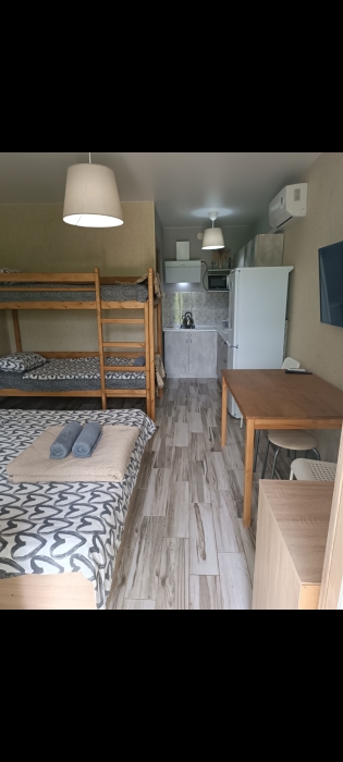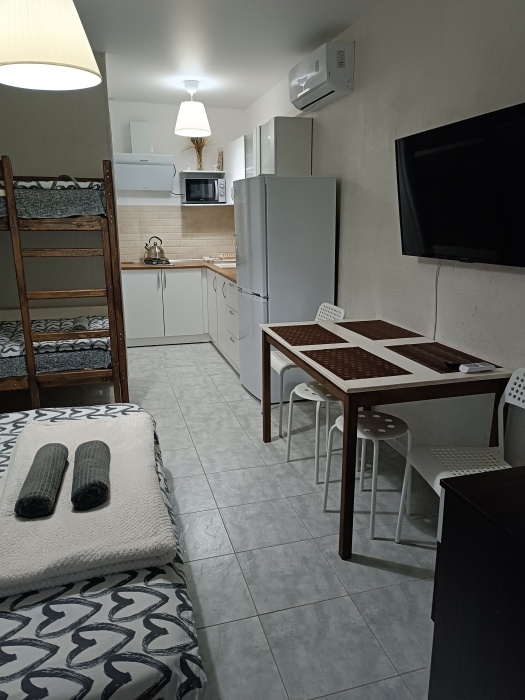 Однокомнатный номер с кухней и санузлом, спальня совмещена с кухней и отдельно санузел, 3 спальных места