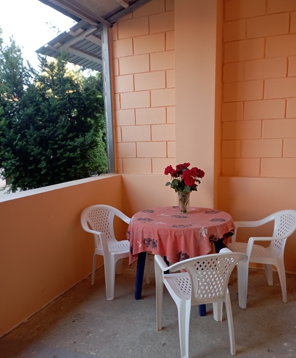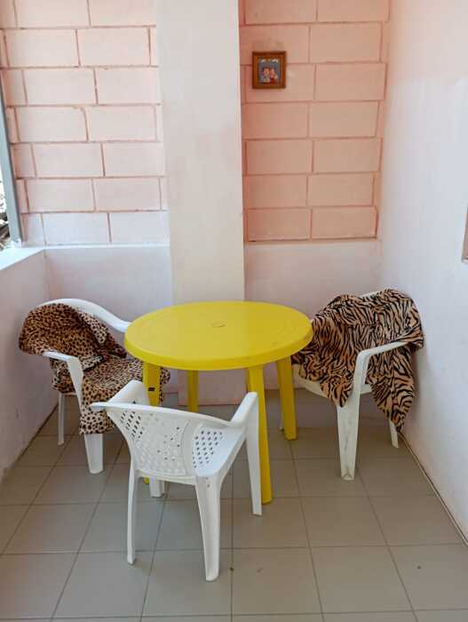Перед каждой комнате при входе есть свой мини-дворик со столом и стульями, где можно посидеть попить чай, кофе, покушать, между собой дворики ограждены стеной, Вы не будете мешать соседям.