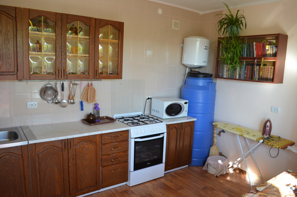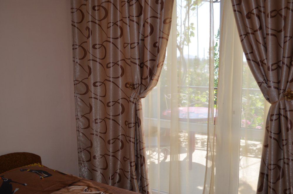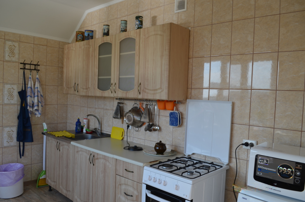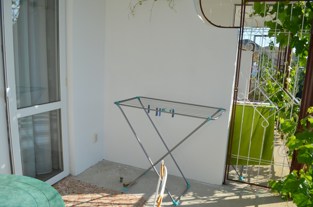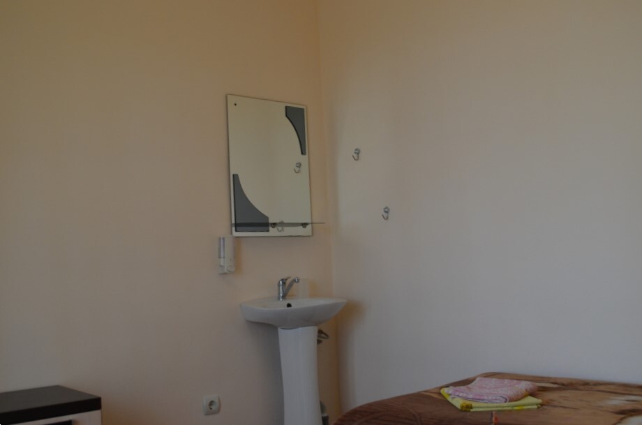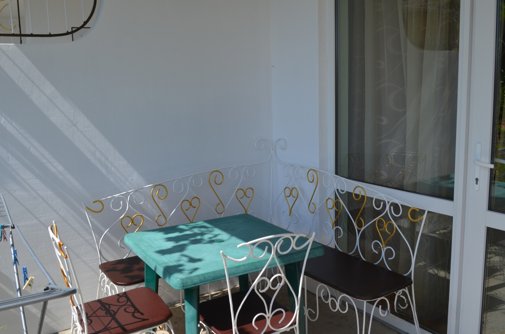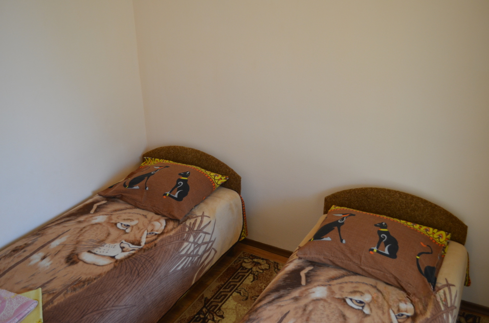 В однокомнатном номере есть большой балкон, увитый виноградом, где Вы можете отдохнуть и покушать в тени. Мягкая мебель: двуспальная кровать и диван. Прикроватные тумбочки. Красивое постельное белье, полотенца, посуда. Бытовая техника: кондиционер, холодильник, бойлер, ж/к телевизор, спутниковое ТВ, электрочайник, интернет wi-fi. Санузел: душ, раковина, унитаз. Холодная и горячая вода круглосуточно. Туалетные принадлежности: мыло, бумага.