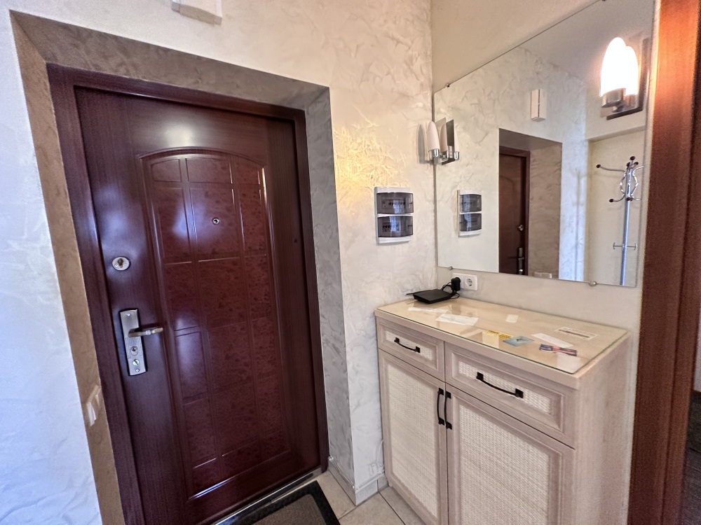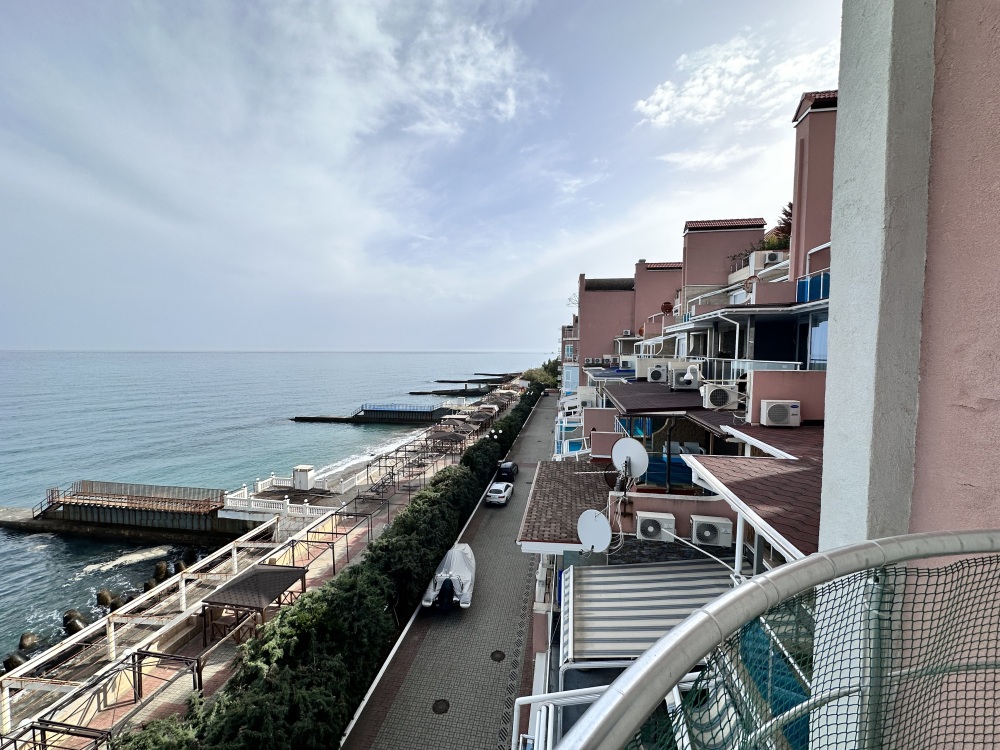 Апартаменты расположены на пятом этаже, поэтому из них Вы сможете любоваться панорамными видами на море. Планировка включает: две спальные комнаты (одна спальня с двуспальной кроватью, вторая – с раскладывающимся диваном), два совмещенных санузла (один из них в спальне); кухню-гостиную с угловым диваном (раскладывается) обеденным столом и барной стойкой; просторную лоджию площадью 35 кв.м., которая станет для Вас классной лаундж-зоной, где Вы сможете наслаждаться морским бризом в полном спокойствии и тишине. Установлены автоматические роллеты. В апартаменте выполнен качественный ремонт, оснащён хорошей мебелью и техникой. Коммуникации: электричество, вода, канализация. Установлена система теплый пол.