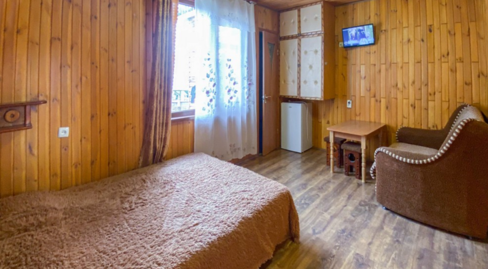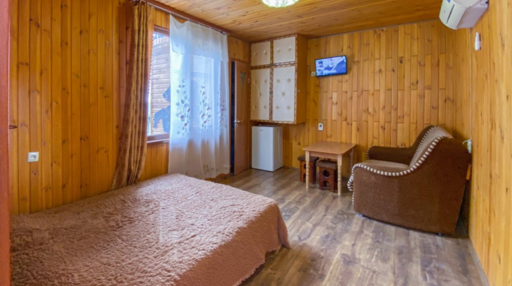 Однокомнатные полулюксы на 2осн (+2доп. человека), кровати 2 односпальные сдвижные-раздвижные на двухспальную кровать, двухспальный раскладной диван, кондиционер, холодильник, санузел с душем и феном, телевизор. чайник, посуда.