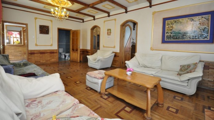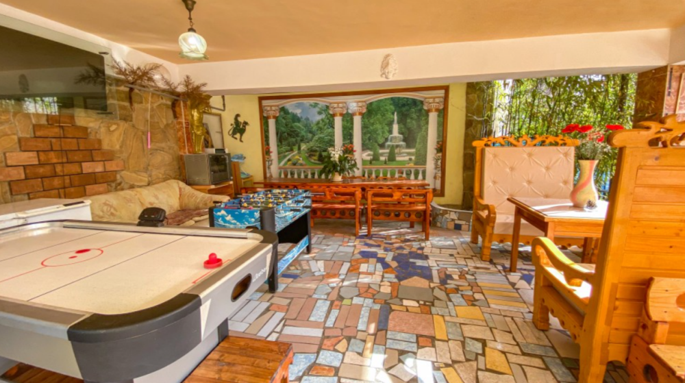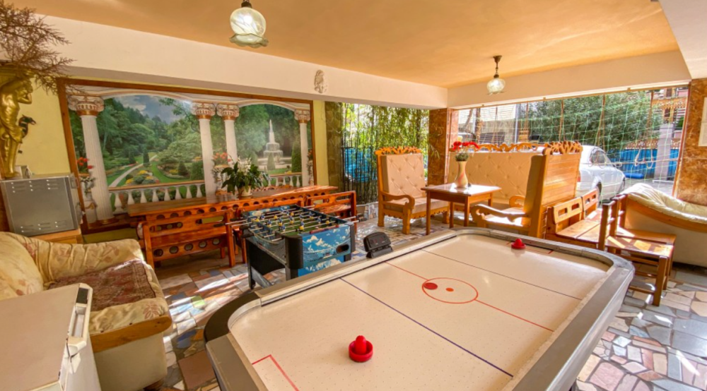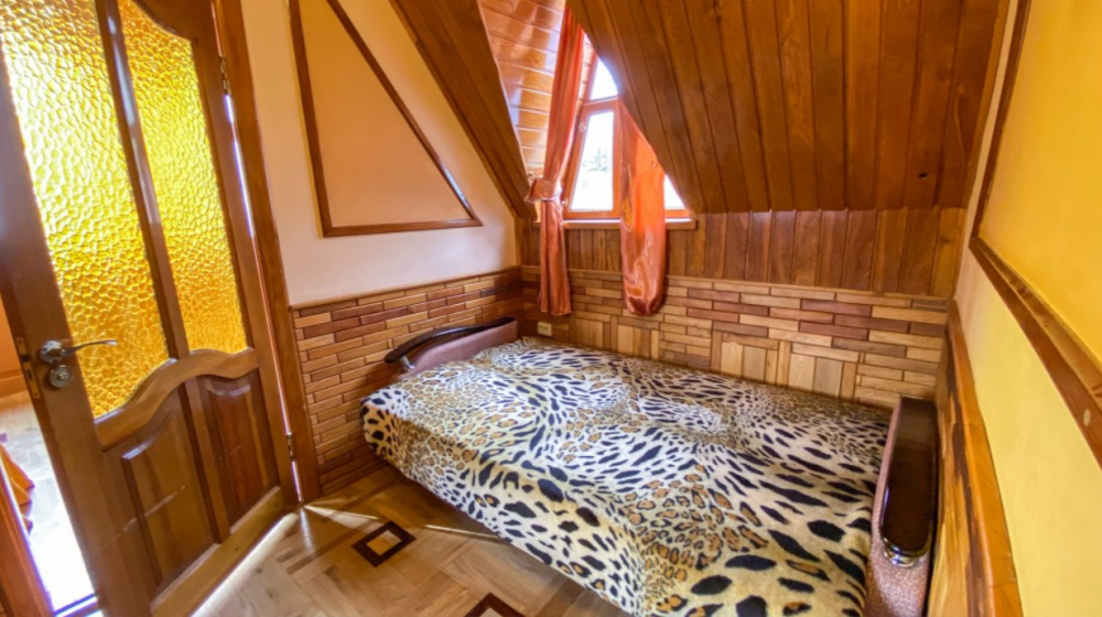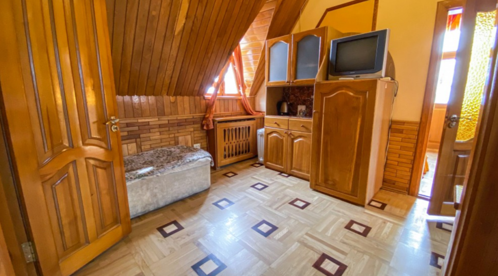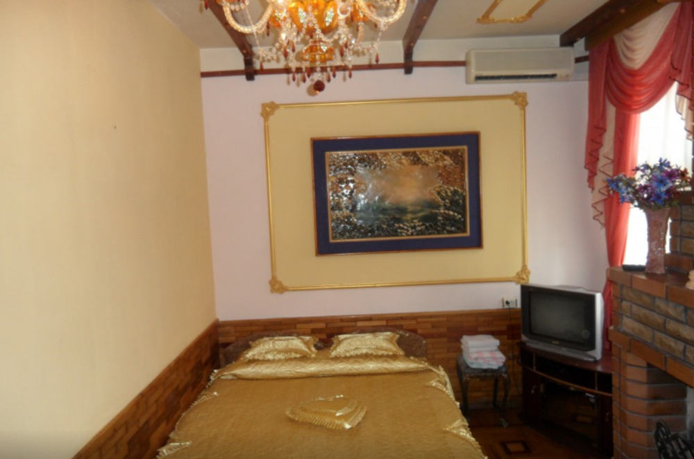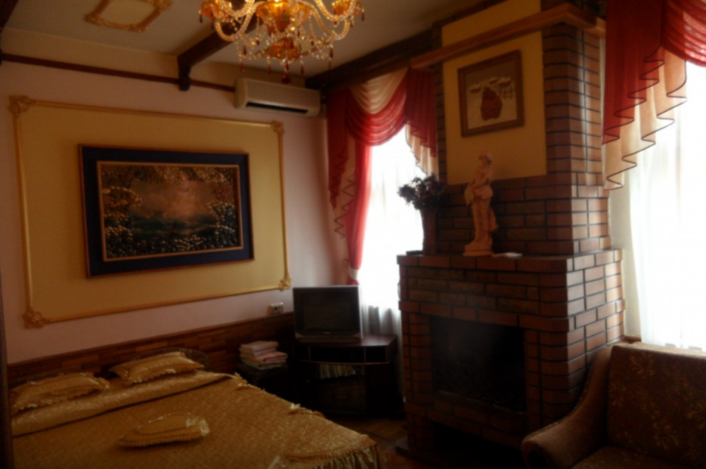 В номере: камин, санузел с феном и душем, 2 дивана, 3 двухспальные кровати, 2 кондиционера, холодильник, 2 телевизора, посуда, чайник.