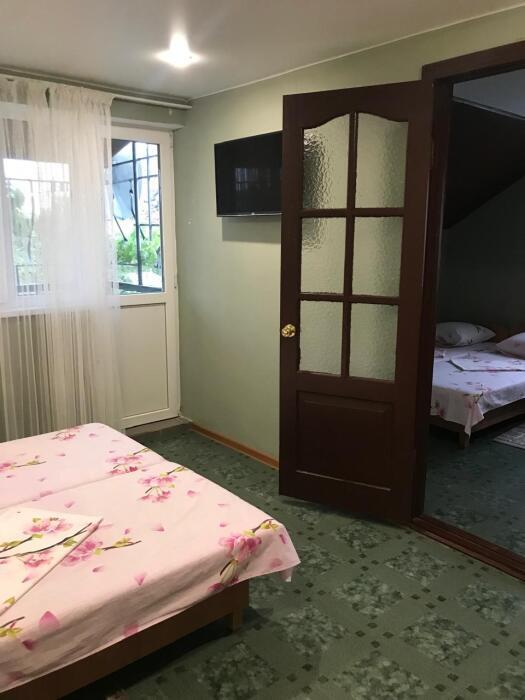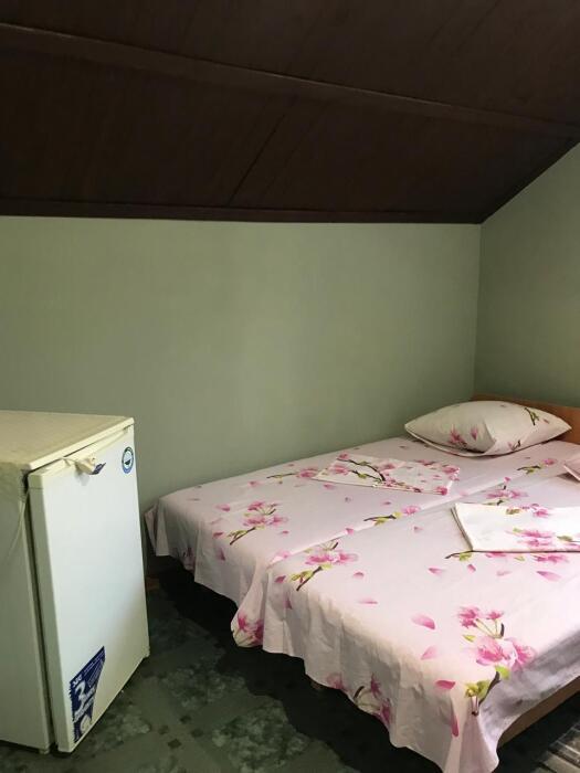 На территории есть общая кухня на 3 номера, мангал, стиральная машина, во дворе есть столики, скамейки, шезлонг.