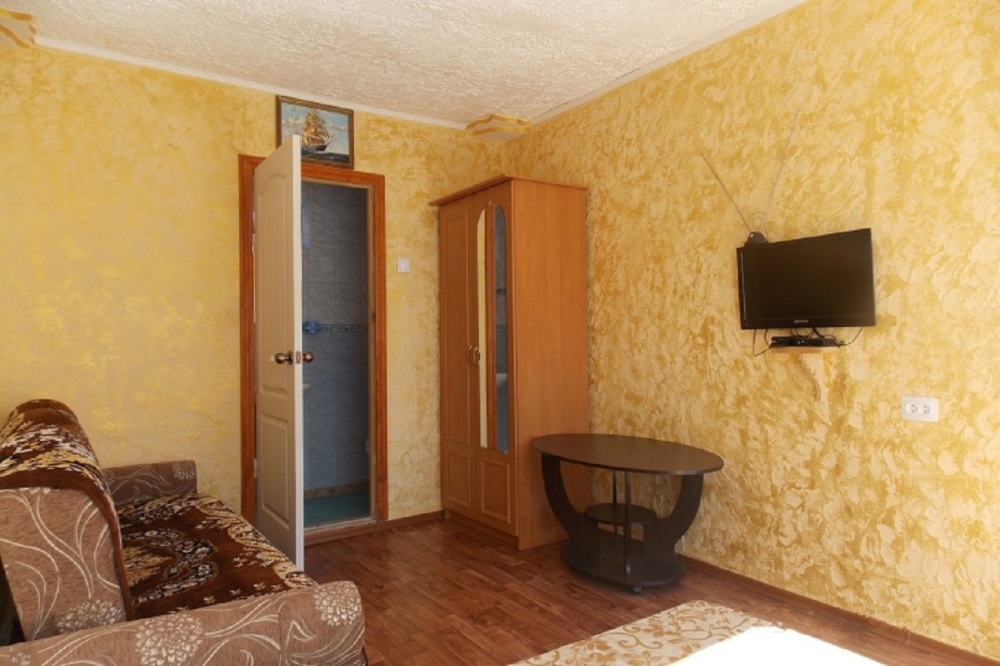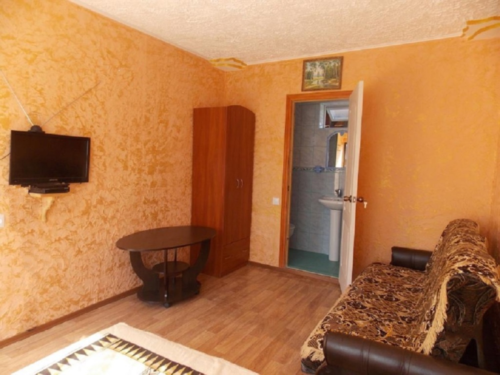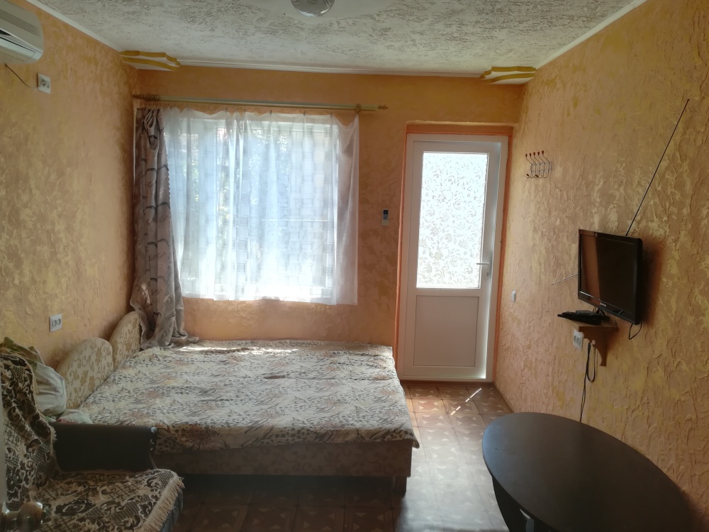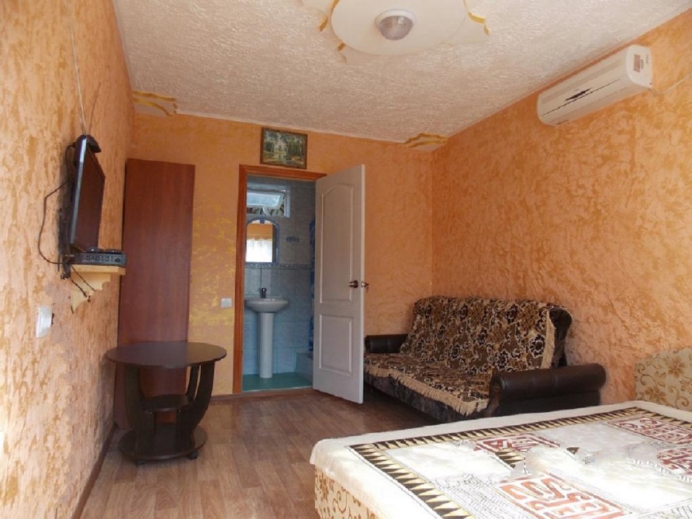 Дом с индивидуальным входом в каждую комнату. В каждой комнате санузел, кондиционер, телевизор, двуспальная кровать, шкаф, диван-книжка, в доме горячая, холодная вода круглосуточно,