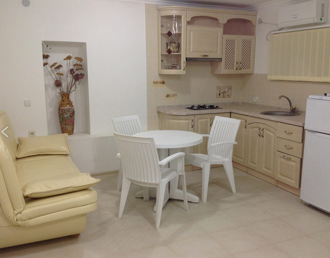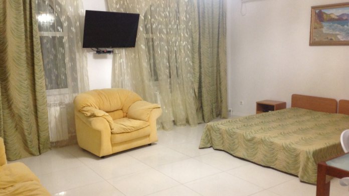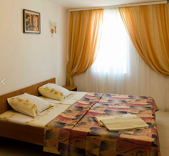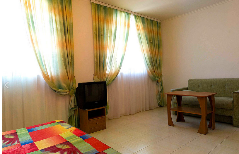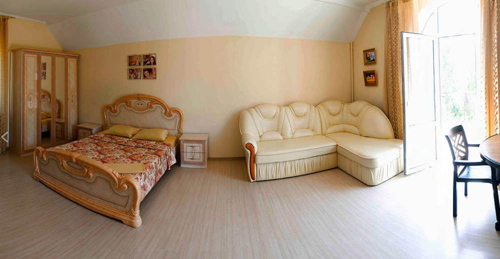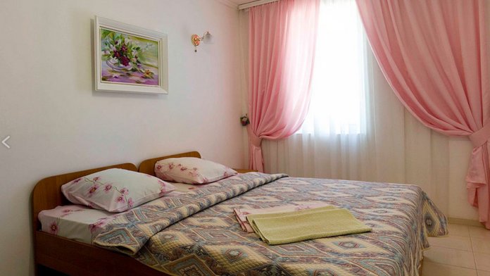 Номера расположены в обособленном 1-этажном коттедже, разделенном на 4 комнаты. Перед входом в номера площадка с виноградной беседкой и обеденным столом, гостям выдается постельное белье и полотенце для душа, кухня общая (плита, кухонная мебель, холодильник, раковина, посуда).