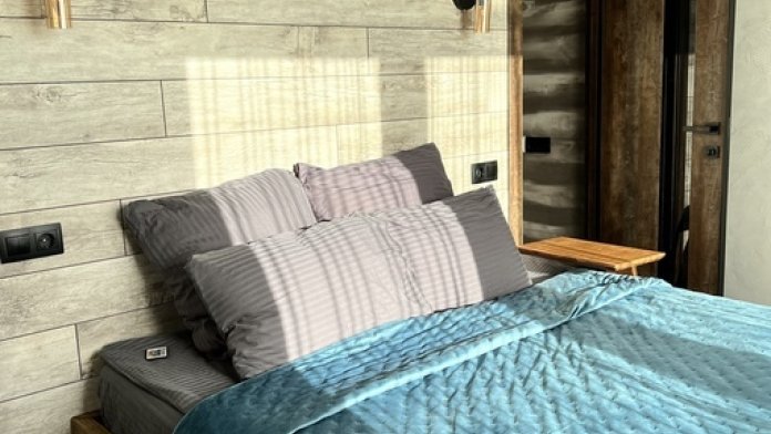 - удобная двуспальная кровать в домике