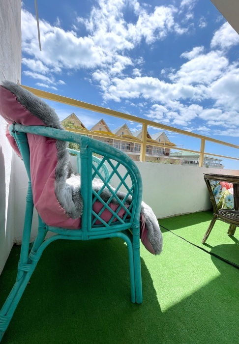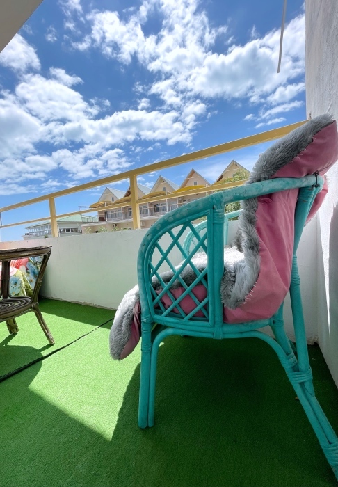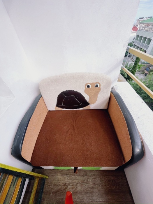 На балконе вторая обеденная зона и еще одно спальное место в виде раскладываемого односпального диванчика.