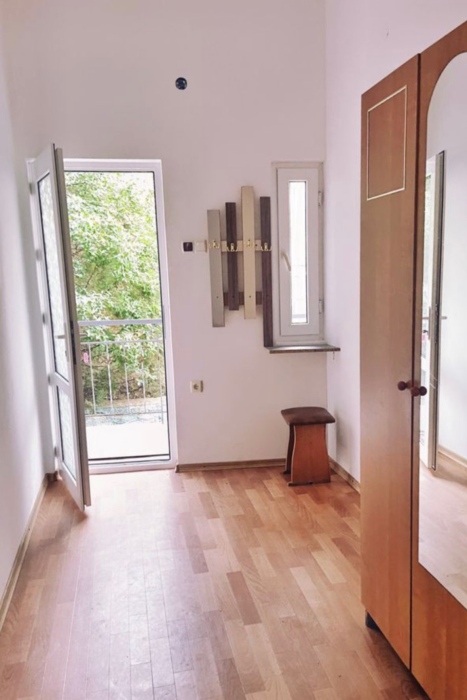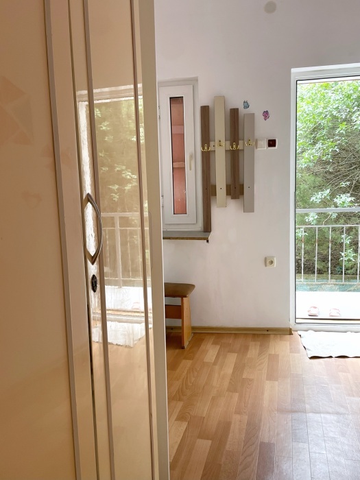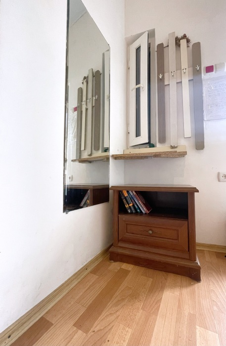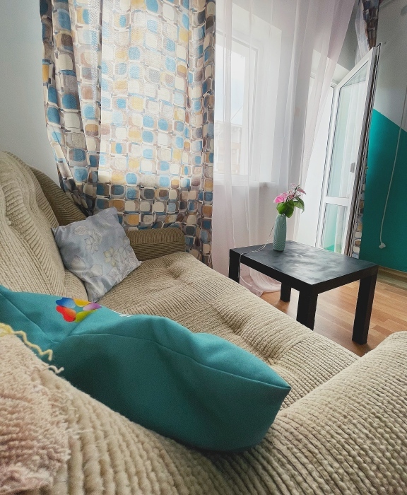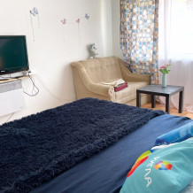 - Отдельный вход, санузел с душем, кухня, прихожая, два балкона, обеденная зона, спальня.