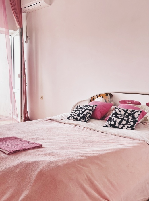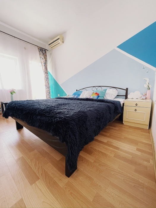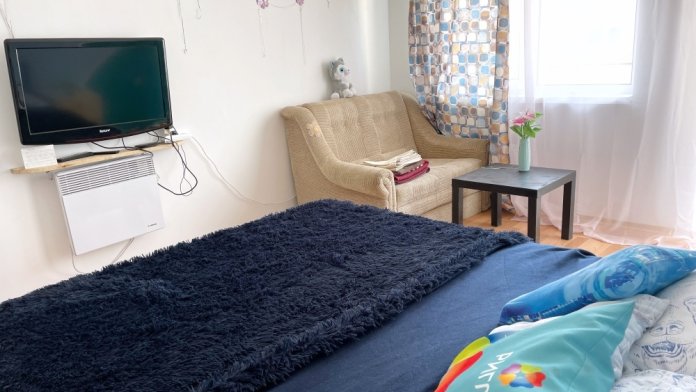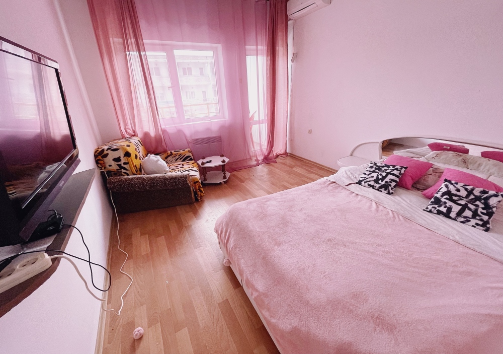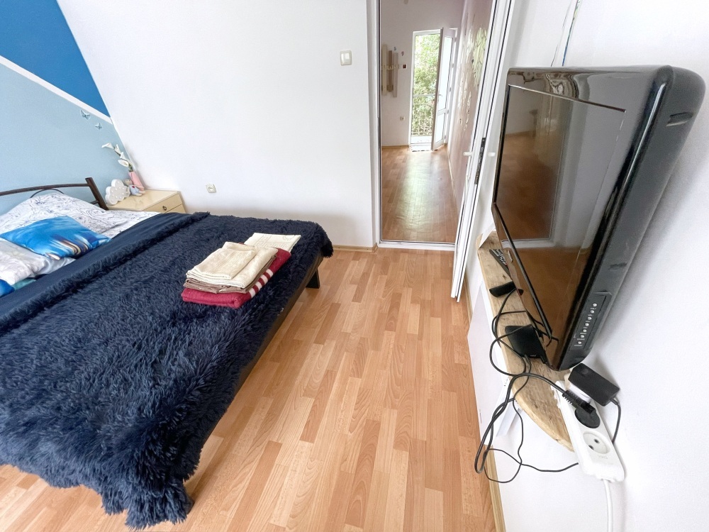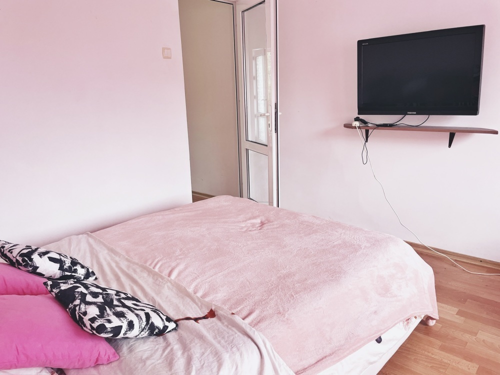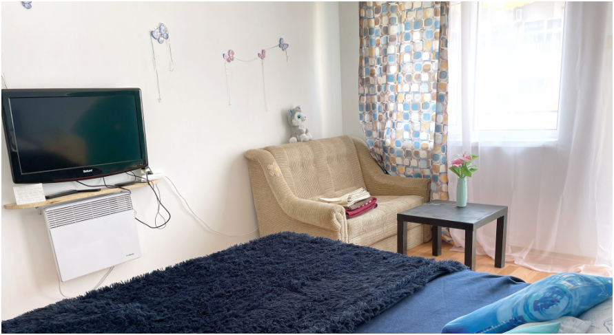 В спальне все необходимые принадлежности для сна и отдыха, в спальне есть большая двуспальная кровать, двуспальный диван, плазменный ТВ, Smart TV, большое количество фильмов, каналов, Youtube.