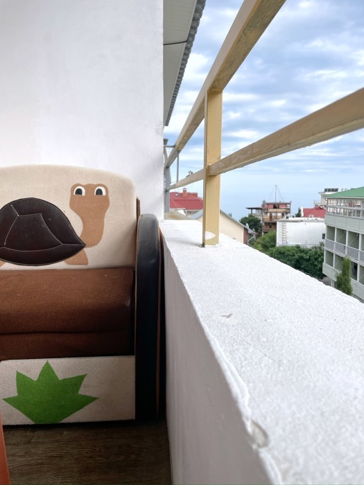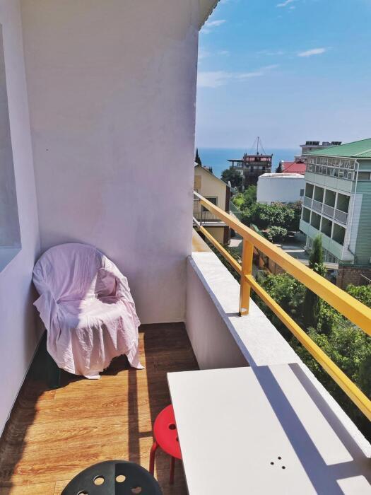 - Вид. Из одного балкона видна и в пешей доступности находится легендарная Гора-Кошка (видна только в одной из квартир). С другого балкона с обоих квартир открывается красивый вид на море.