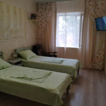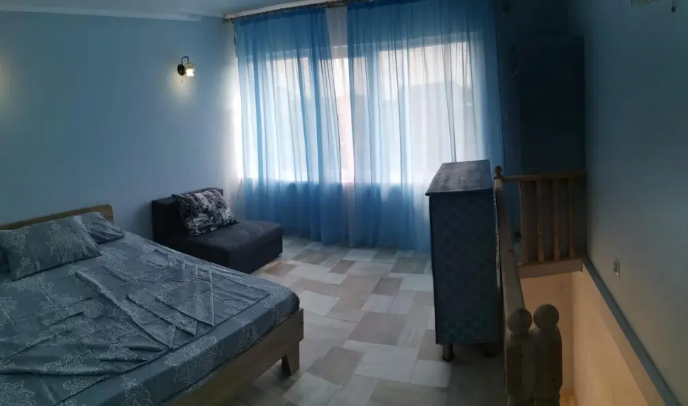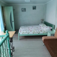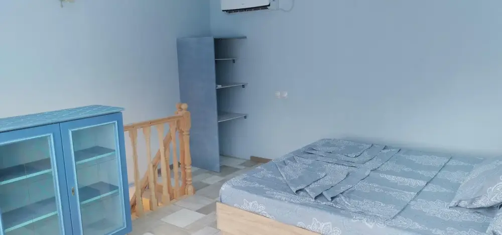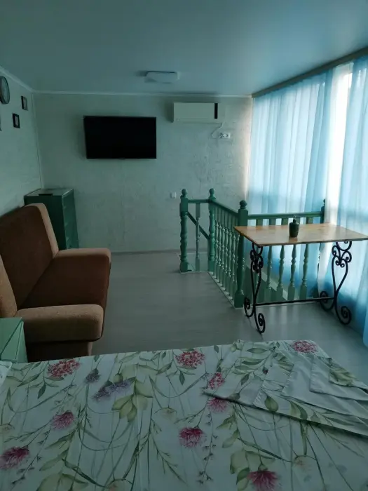 Двухэтажные апартаменты с кухней. 1 этаж диван- кровать, кухня, санузел. В апартаментах имеется все для комфортного отдыха и проживания: холодильник, газовая плита, телевизор и кондиционер. На 2 этаже двуспальная кровать, раскладное кресло.
