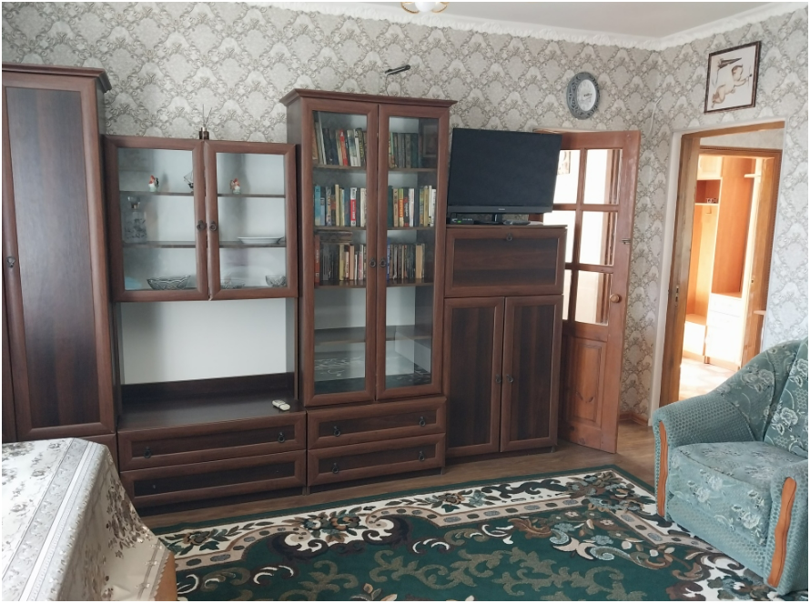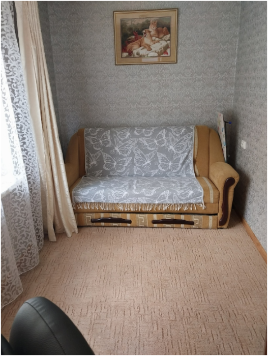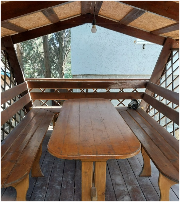 Домик рассчитан на 2-6 гостей, имеется кухня, санузел, прихожая, две комнаты, телевизор, кабельное, Wi-Fi, кондиционер. Во дворе зона отдыха на свежем воздухе с беседкой и мангальной зоной.