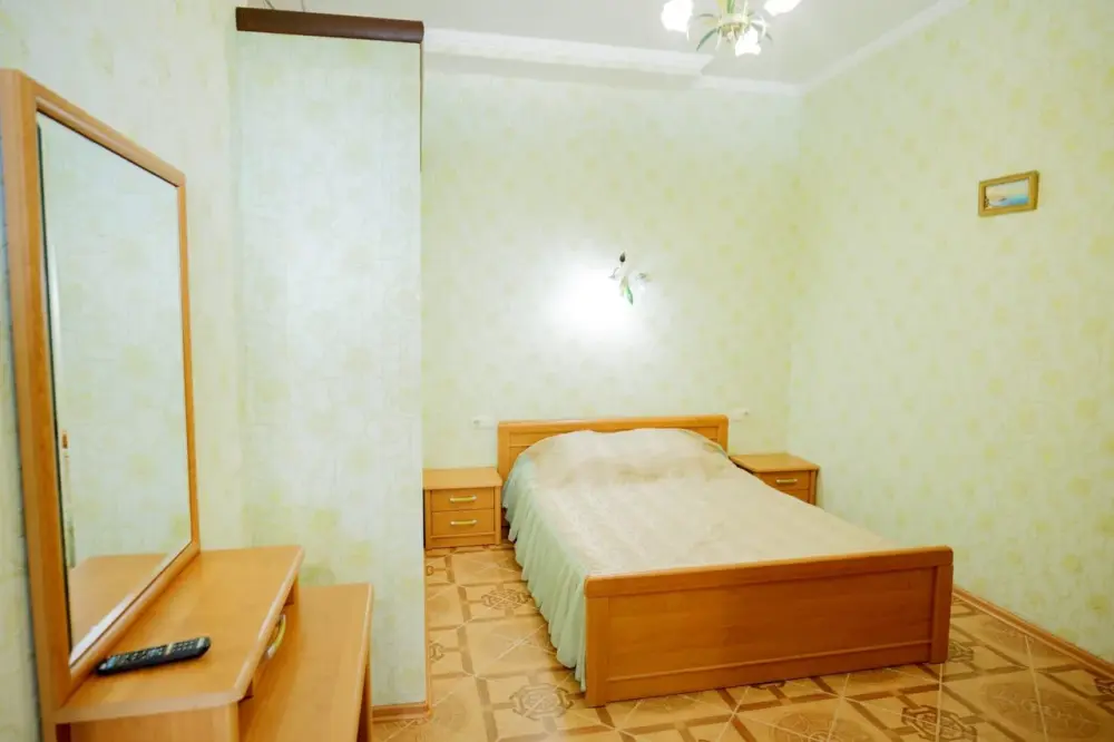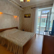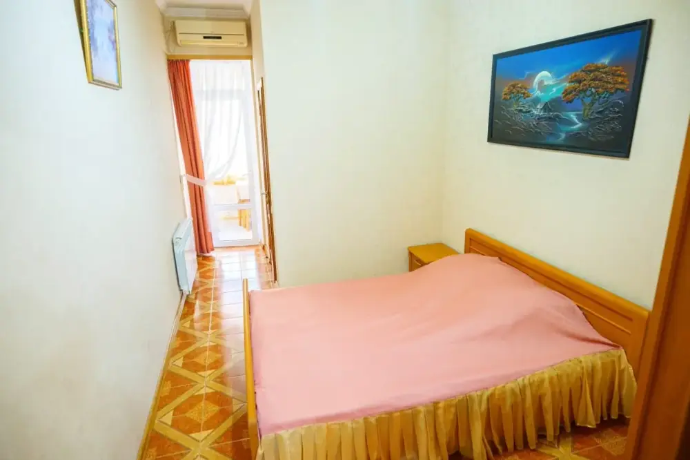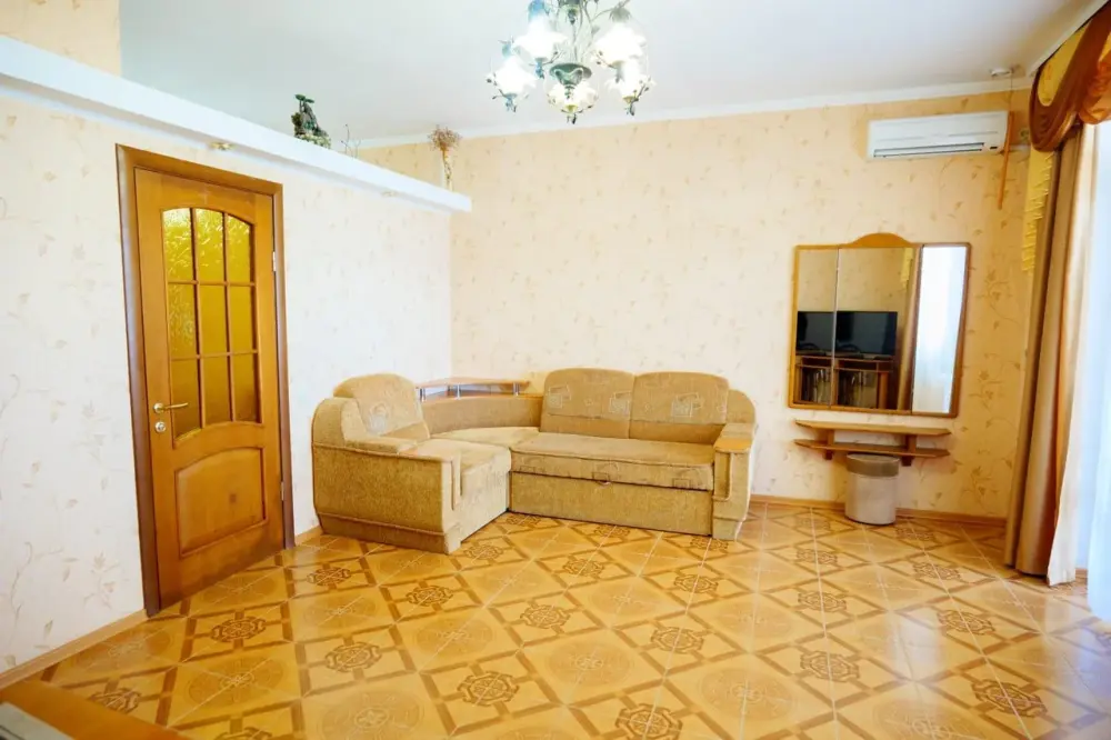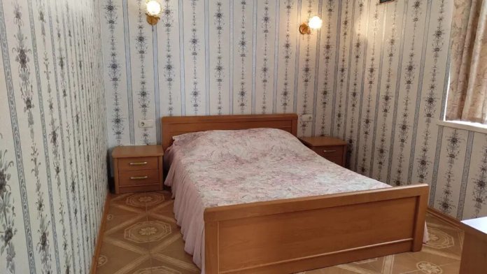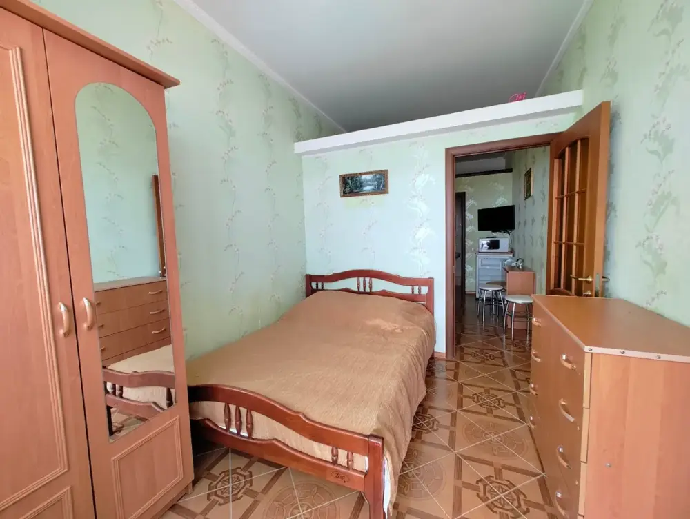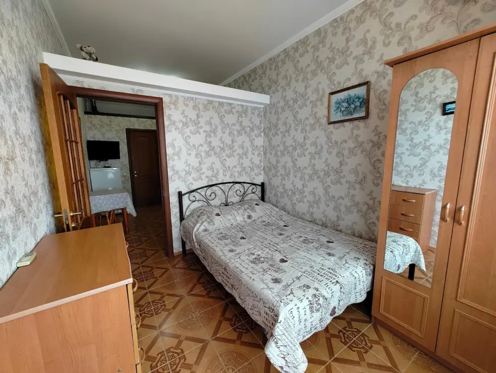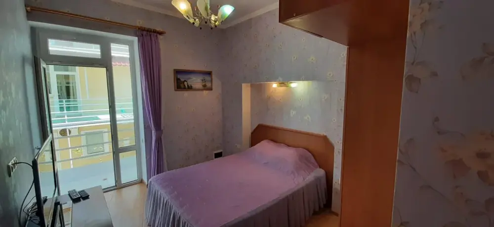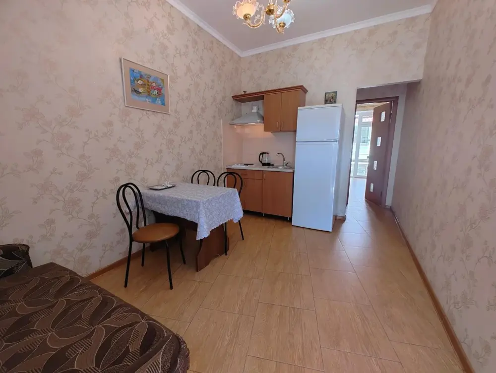 Двухкомнатный номер со всем необходимым для комфортного проживания. Имеется кухня, ванная комната, а в спальне есть выход на балкон.