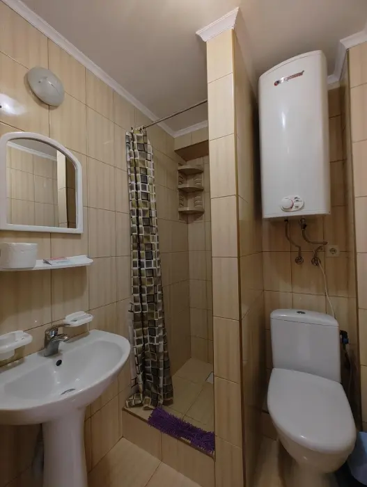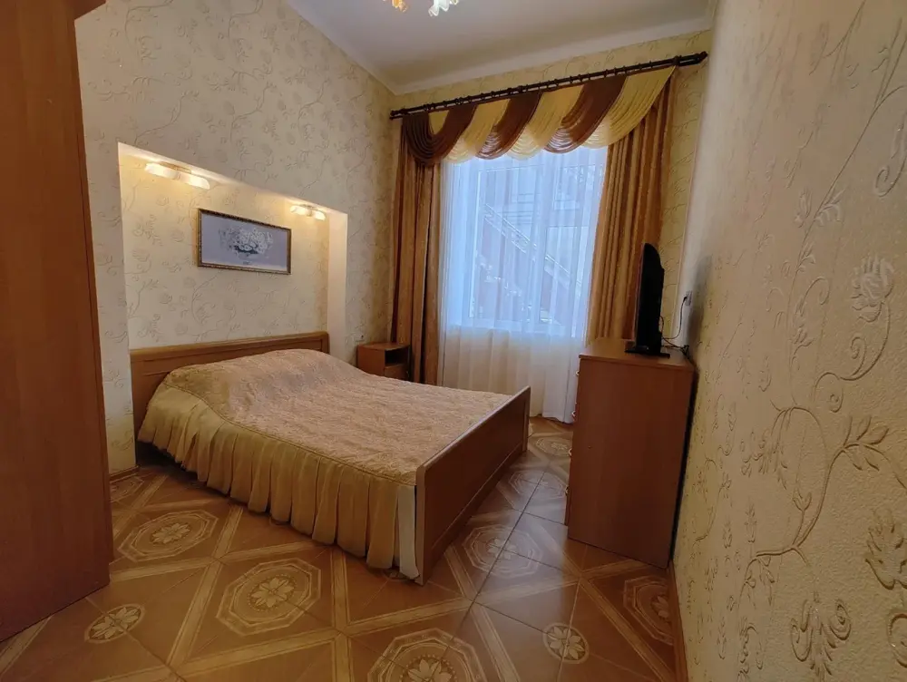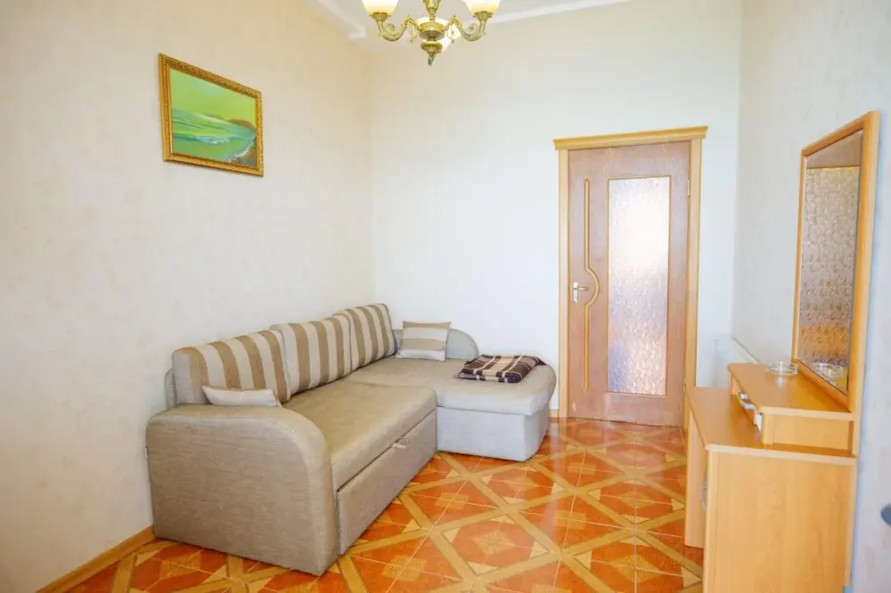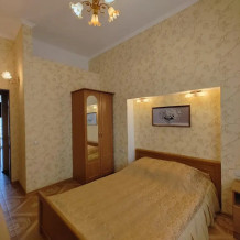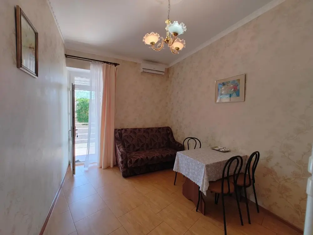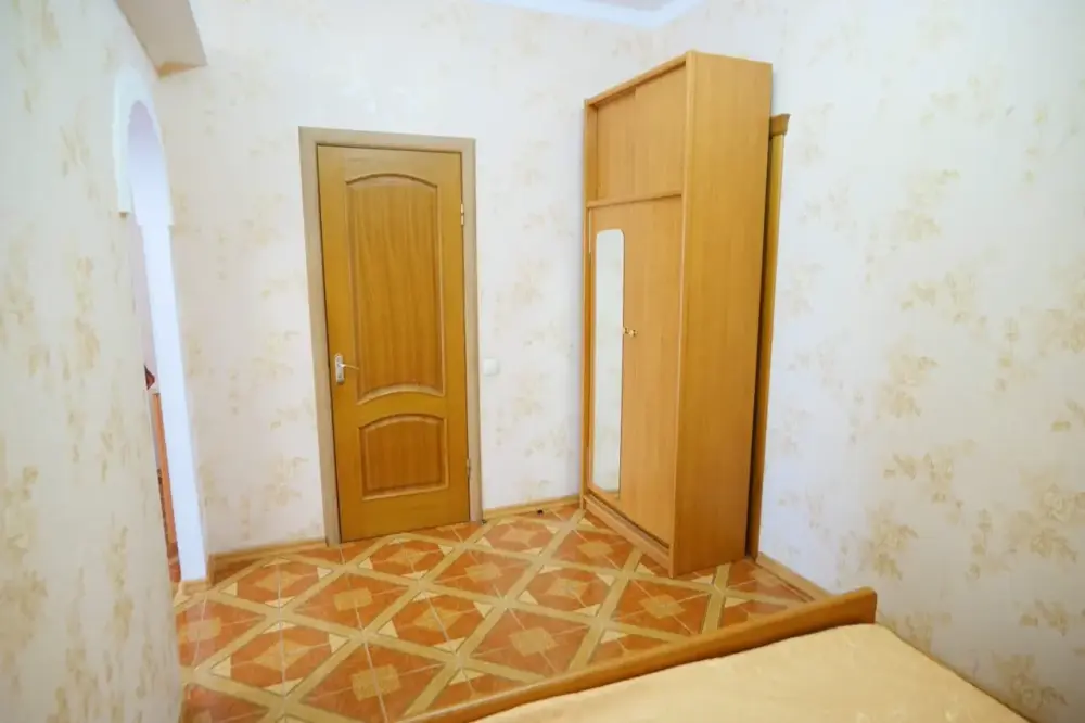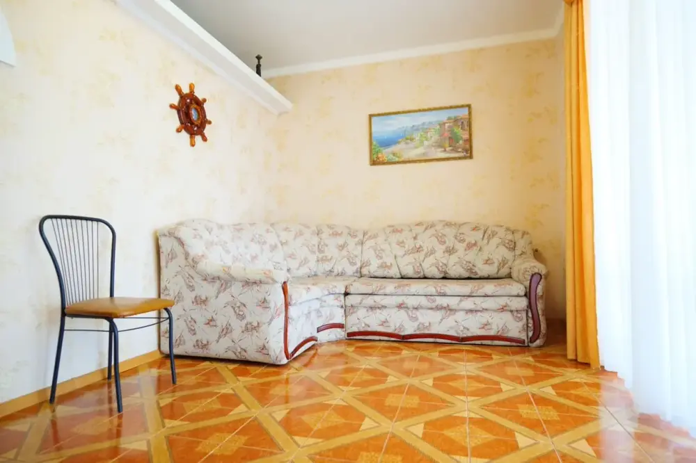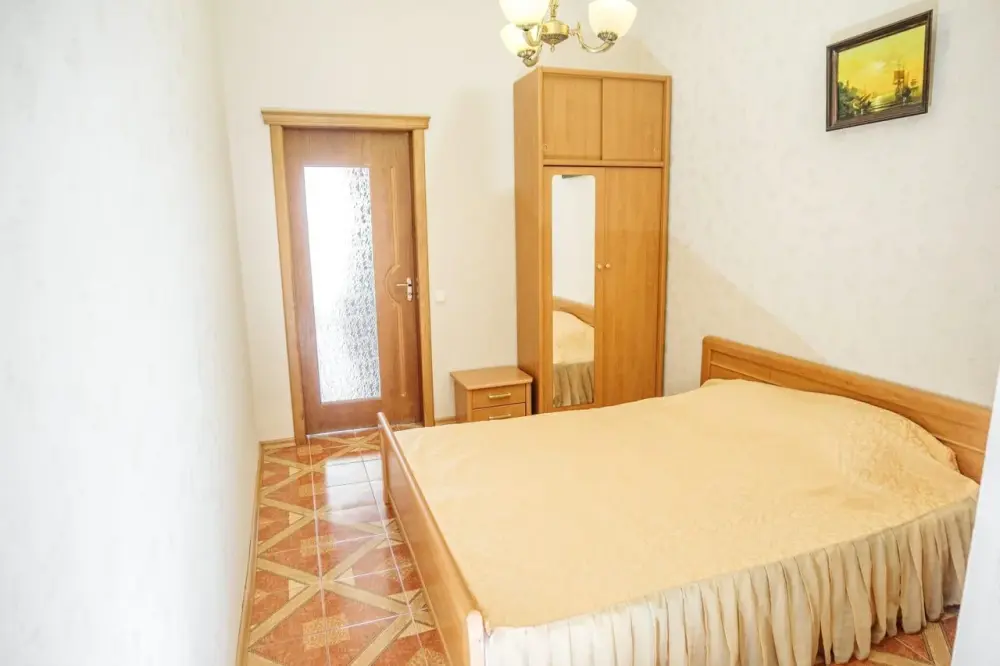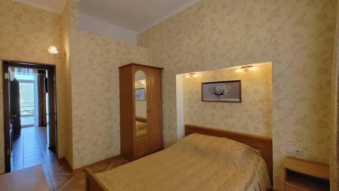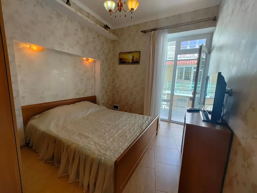 Двухкомнатный номер со всем необходимым для комфортного проживания. Имеется кухня, ванная комната, а в спальне есть выход на балкон.