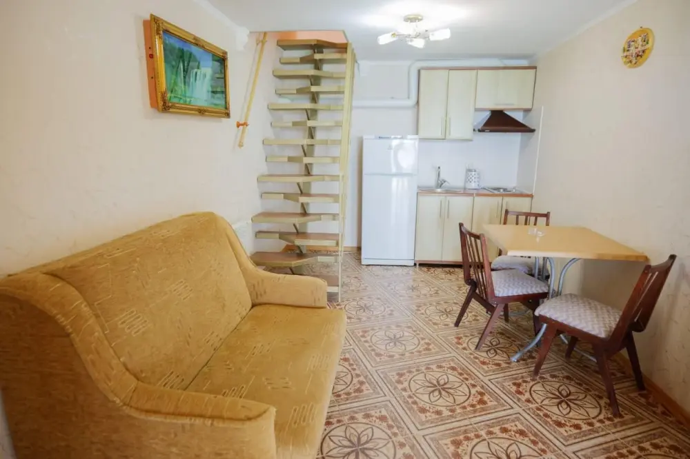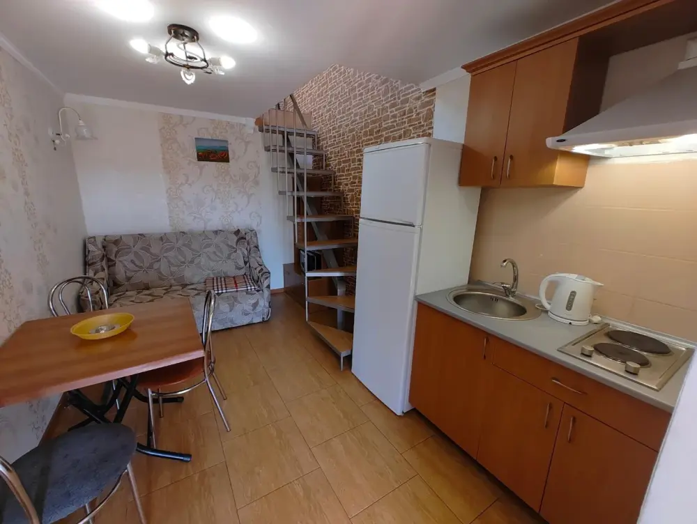 Уютный номер с мансардой, оборудованной кухней и балконом с прекрасным видом.