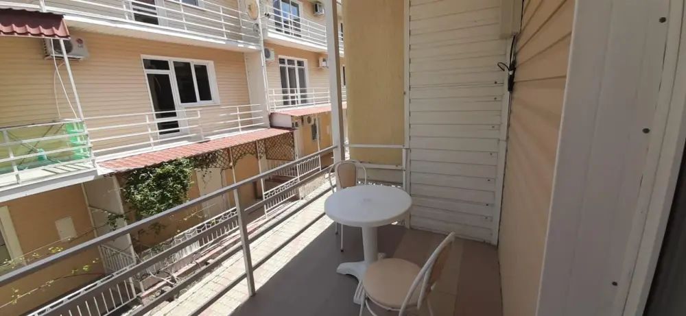 Гостям предоставляются комфортабельные номера с уютным спальным местом, балконом, личной ванной комнатой и кухней, оборудованной всем необходимым для самостоятельного приготовления пищи.
