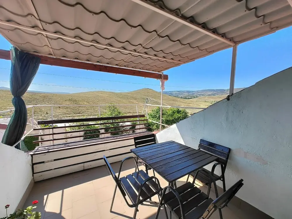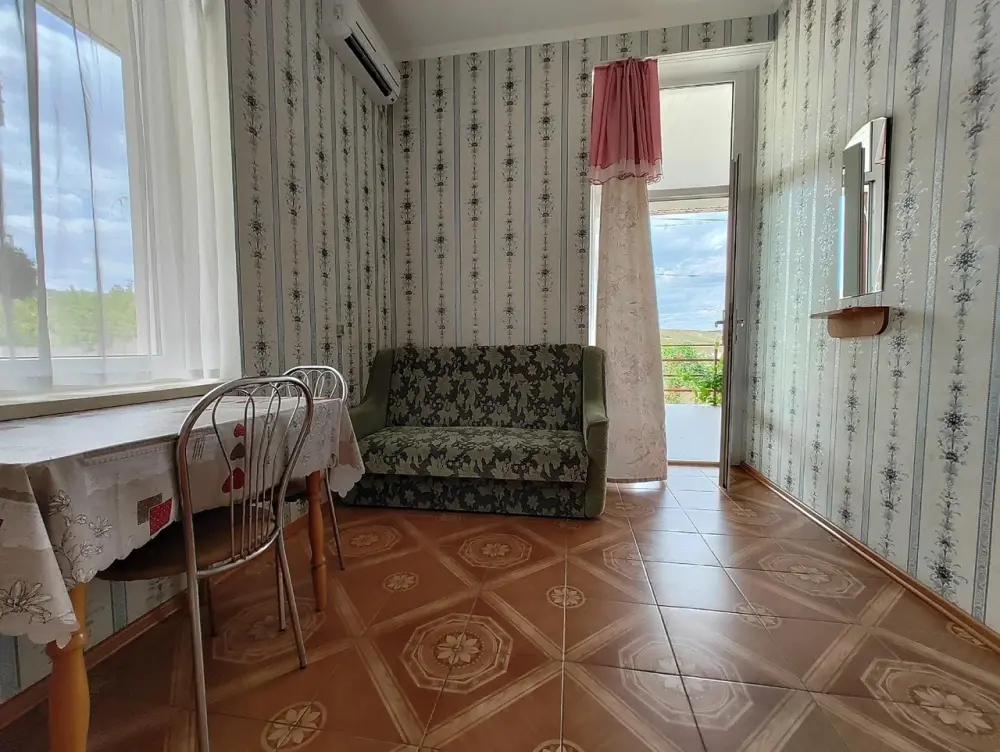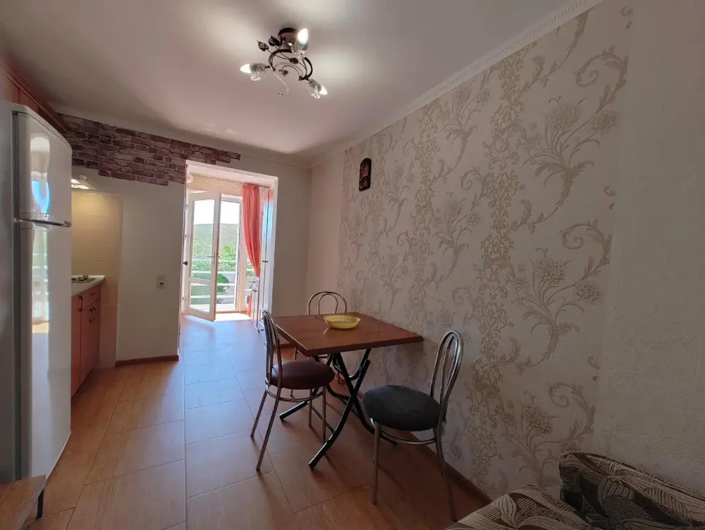 Уютный четырехместный номер с кухней, ванной комнатой, балконом и прекрасным видом.