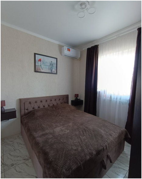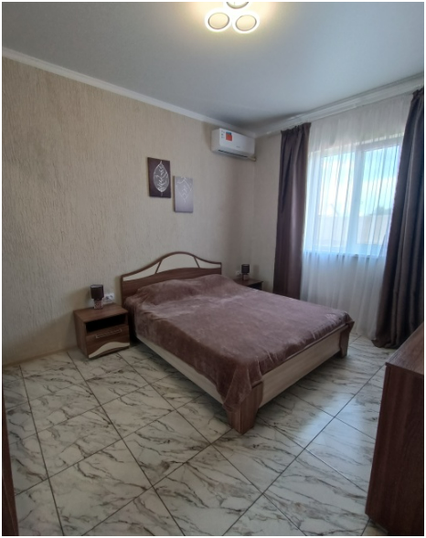 Мебель необходимая, современный ремонт, кондиционер в каждой комнате, телевизор, интернет, WI-FI по всей территории, два санузла, стиральная машинка-автомат, посудомоечная машина, выход из кухни на террасу, что очень удобно, огороженный двор, мангал, постельное белье, полотенца, посуда, автоматические ворота. Все есть для спокойного, комфортного отдыха.