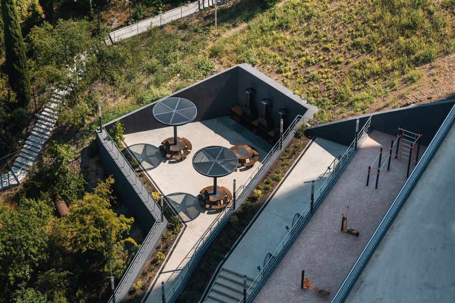 - детская площадка, теннисный корт, зона настольного тенниса;