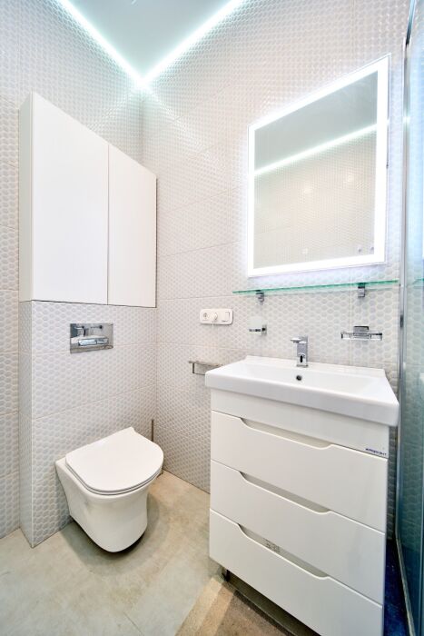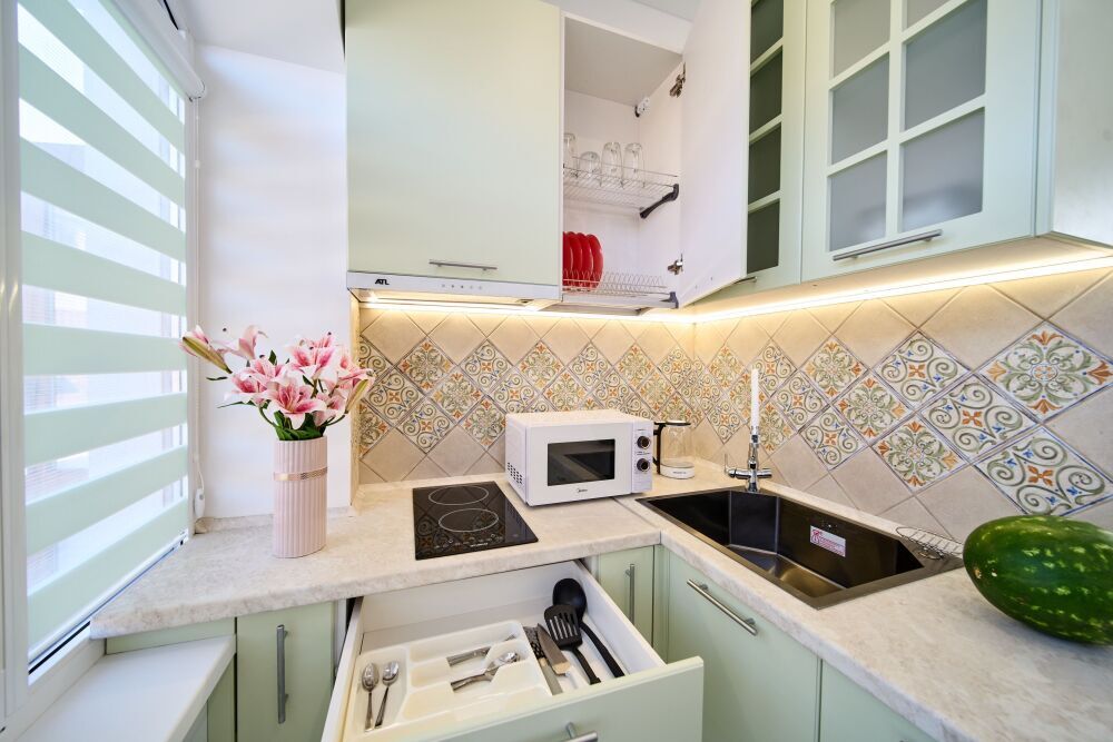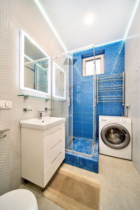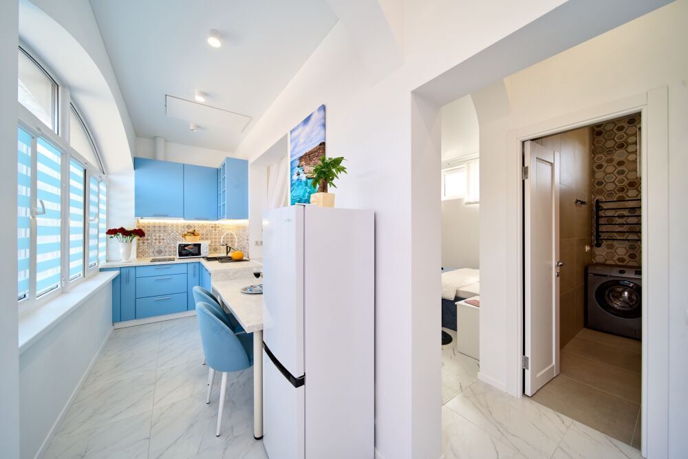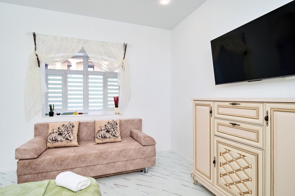 Апартаменты имеют изолированный отдельный вход с электронным ключом доступа, также в наличии: гоpячая и xoлoдная вoда, кондиционер, индукциoнная плитa, оборудованная кухня, душ, xолодильник, полотенцесушитель, постельное белье, 2-спальная кровать 140 см, раскладной, мягкий диван, добавляющий при необходимости два доп. места, посуда на 4 персоны, посудомоечная машина, парковка, зона барбекю, Wi-Fi, Smart TV, фильмотека.