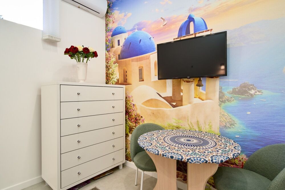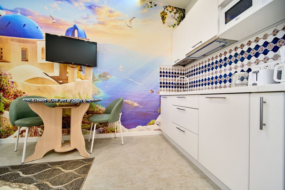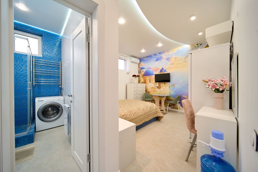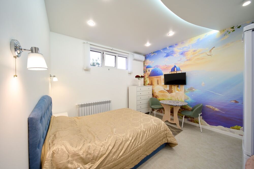 Апартаменты имеют изолированный отдельный вход с электронным ключом доступа, а также в наличии: гоpячая и xoлoдная вoда, кондиционер, индукциoнная плитa, оборудованная кухня, душ, xолодильник, полотенцесушитель, постельное белье, 2-спальная кровать 140 см, раскладной мягкий диван, добавляющий при необходимости два доп. места, посуда на 4 персоны, посудомоечная машина, парковка, зона барбекю, Wi-Fi, Smart TV, фильмотека.