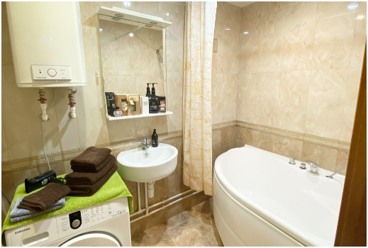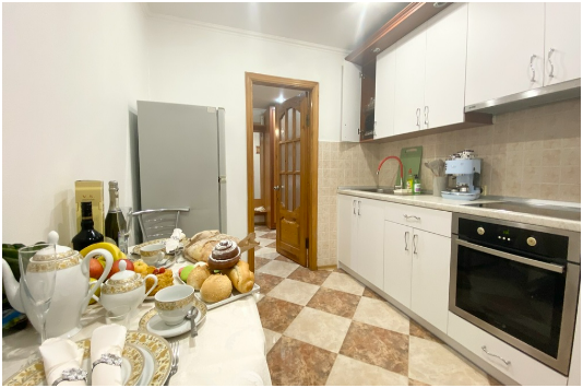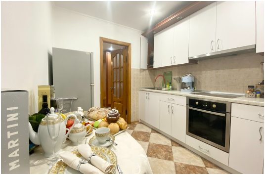 - Холодильник, микроволновая печь, стиральная машина, фен, утюг, гладильная доска, посуда для готовки и сервировки стола - абсолютно вся.