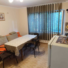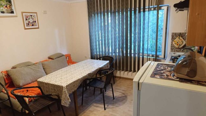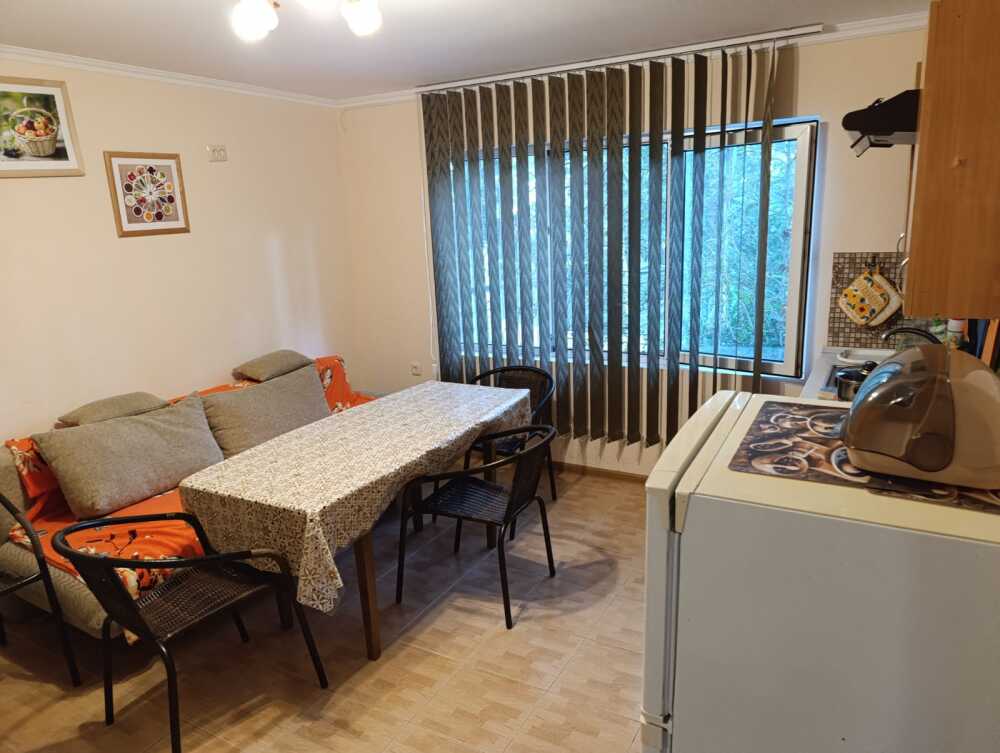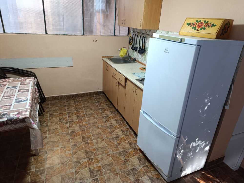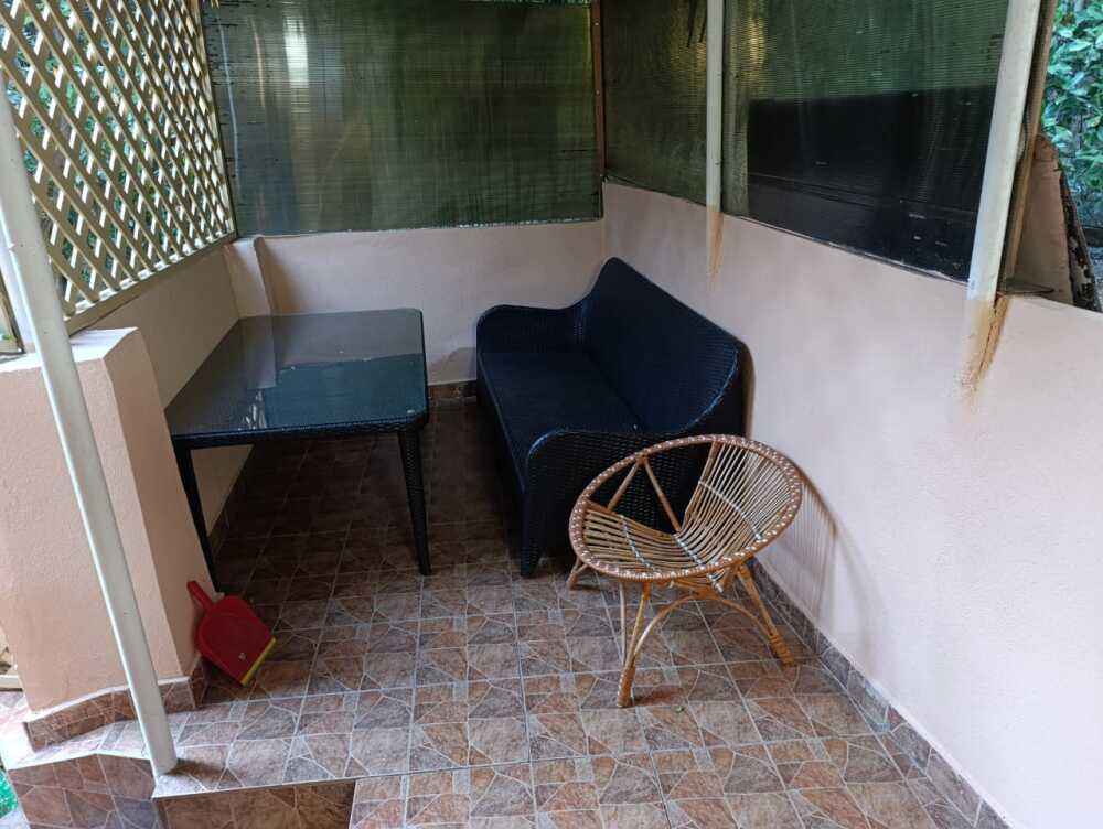 2-уровневый летний дом, комната на верхнем уровне, кухня на нижнем уровне, на семью 2 взрослых и 1-2 ребенка. Большая двухспальная кровать, ортопедический матрац, софа, в кухне раскладной диван, кондиционер, ТВ, утюг, белье, кухня, посуда, газ, холодильник, горячая и холодная вода постоянно,