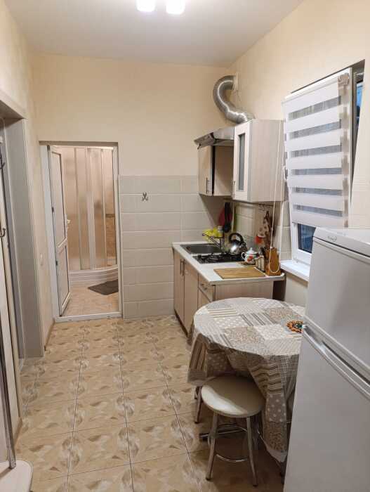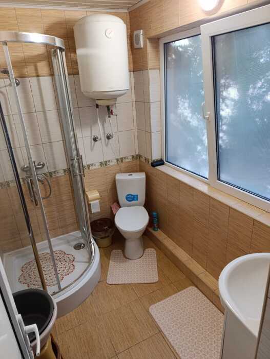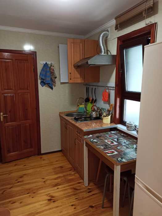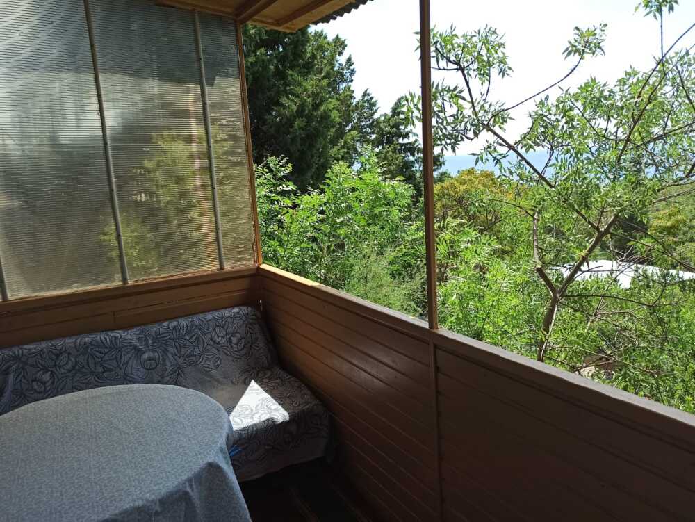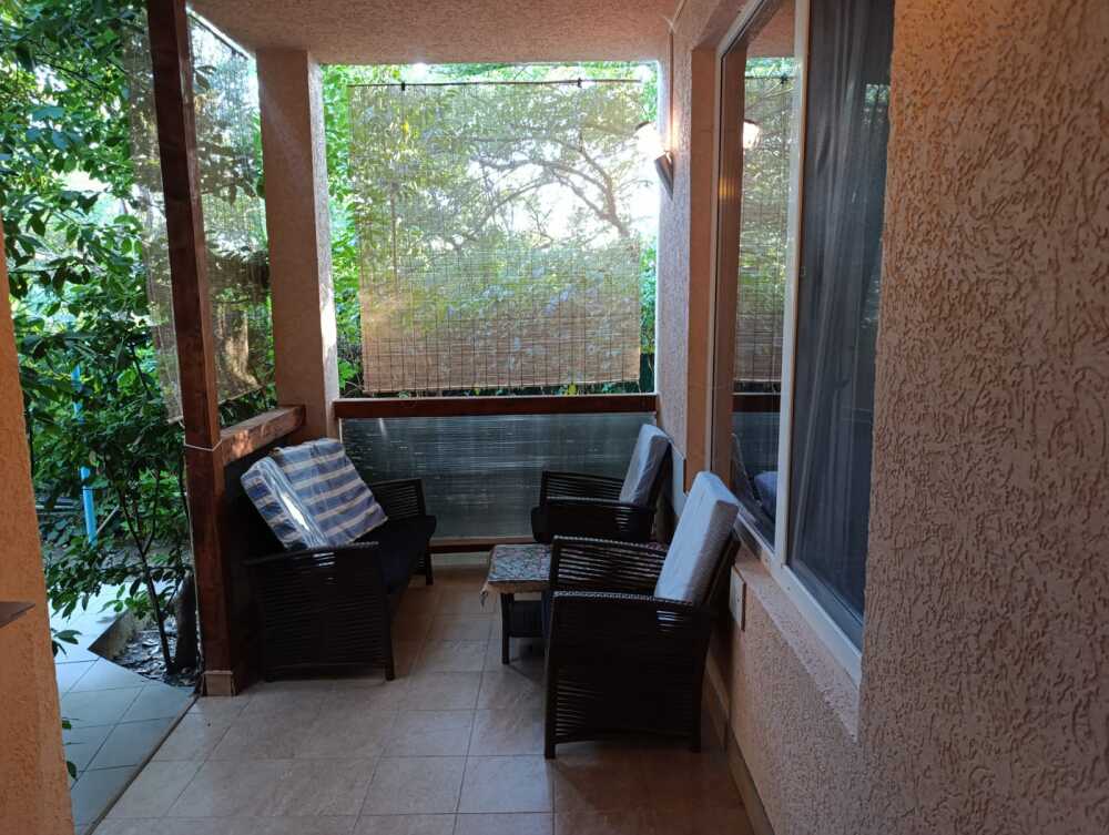 Хороший ремонт, вид на море. На участке растёт лавр благородный, пальмы, инжир, сирень. В комнатах хорошая новая мебель, по две односпальные кровати, топперы, диван, раскладное кресло, кондиционер, цифровое TV, на кухне есть вся посуда, газ, холодильник, туалет-душ (вода постоянно), балкон с мебелью и видом на море, мангал.