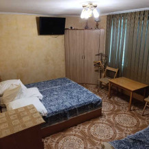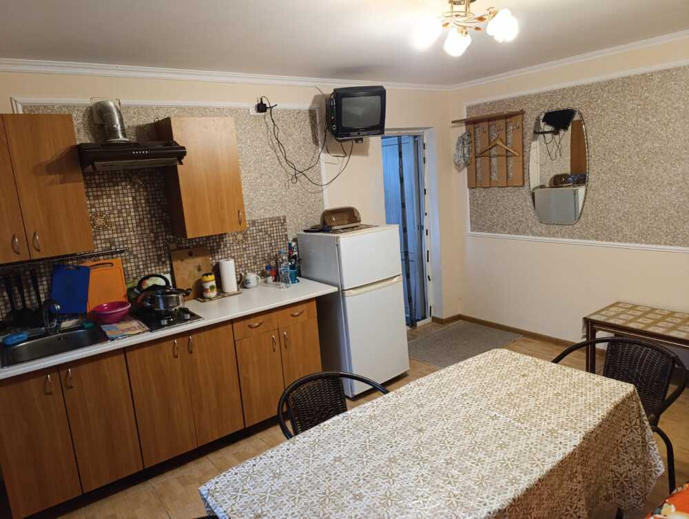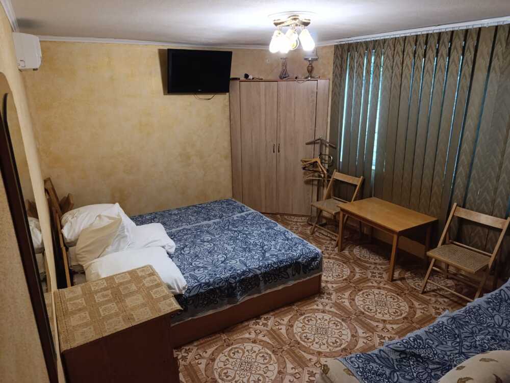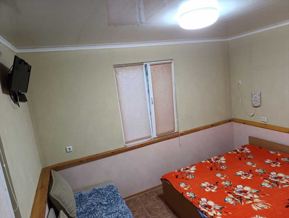 Летний 1-комнатный дом, на семью из 2 взрослых и 1-2 ребенка. Две односпальные кровати, раскладной диван, кондиционер, ТВ, утюг, белье.Летняя кухня оснащена всем необходимым для приготовления пищи,газ.Санузел совмещен-ный, душевая кабинка,вода горячая,холодная постоянно.Во дворе мангал.