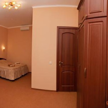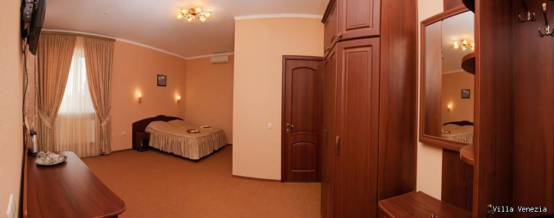 В номере есть ковровое покрытие, кровать (двуспальная 1800*2000, или 2 полуторные 900*2000), чайный набор, рабочий стол, стулья, внутренний телефон, платяной шкаф.