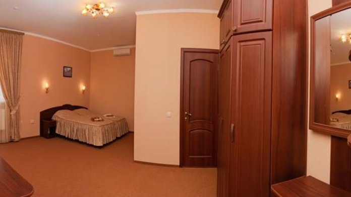 В номере есть ковровое покрытие, кровать (двуспальная 1800*2000, или 2 полуторные 900*2000), чайный набор, рабочий стол, стулья, внутренний телефон, платяной шкаф, журнальный столик.
