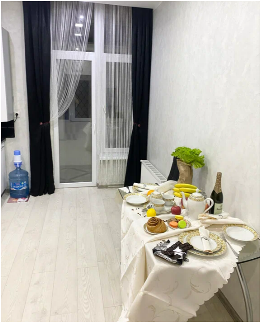 Спальных мест 2 (двуспальная кровать). Wi-Fi, кулер с питьевой водой, SMART TV, кофемашина с запасом ароматного кофе для приятного пробуждения утром чтобы насладиться терпким и горьким ароматом, холодильник, микроволновая печь, стиральная машина, фен, утюг, гладильная доска, посуда для сервировки стола и готовки. Выглаженное, чистое и приятно пахнущее х/б постельное белье и комплект пушистых полотенец (обработка после сушки высокотемпературным паром).