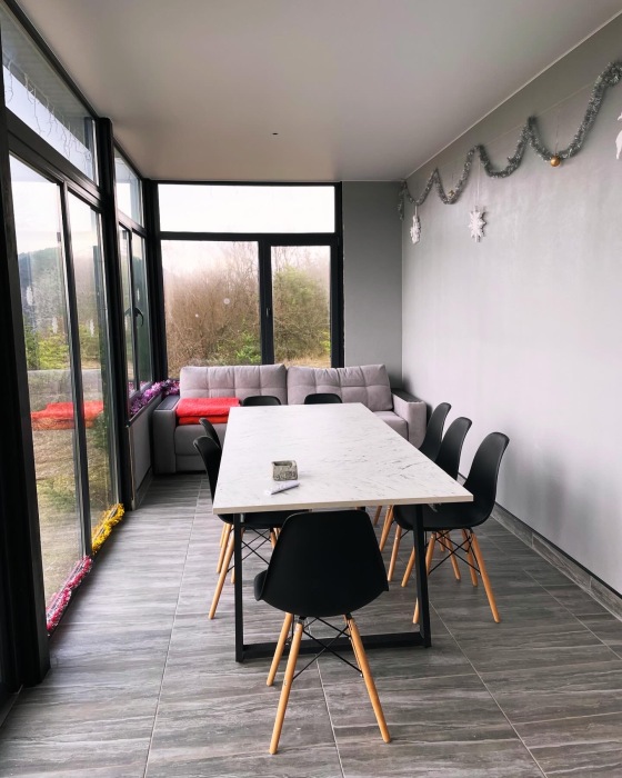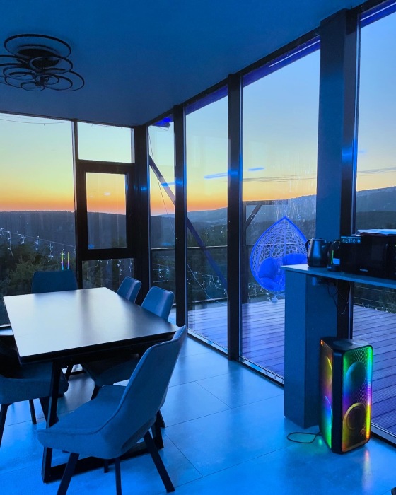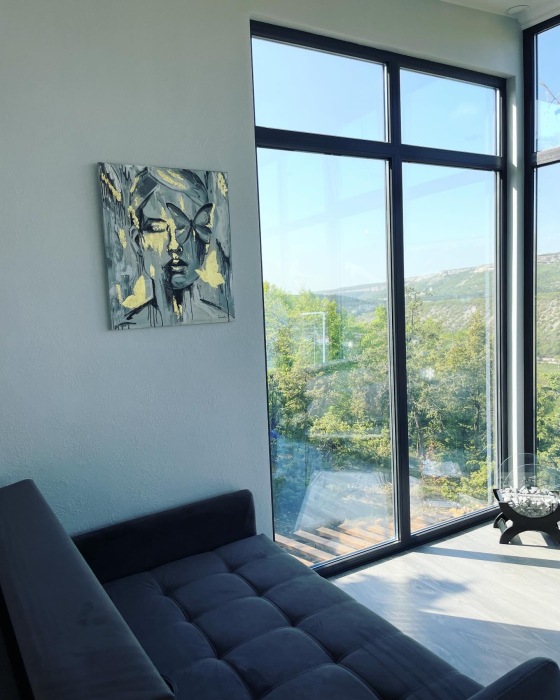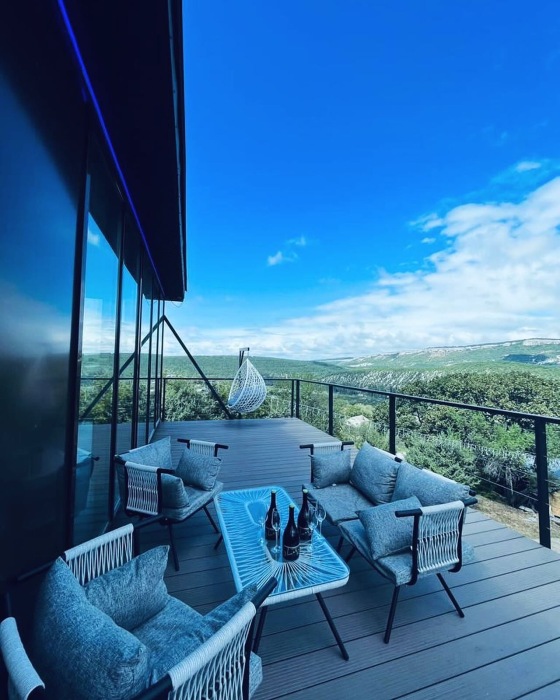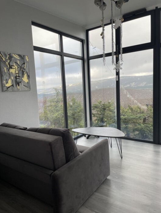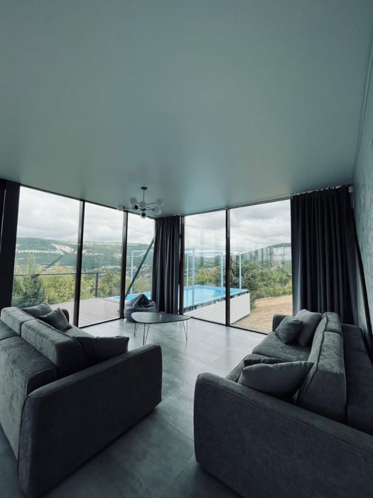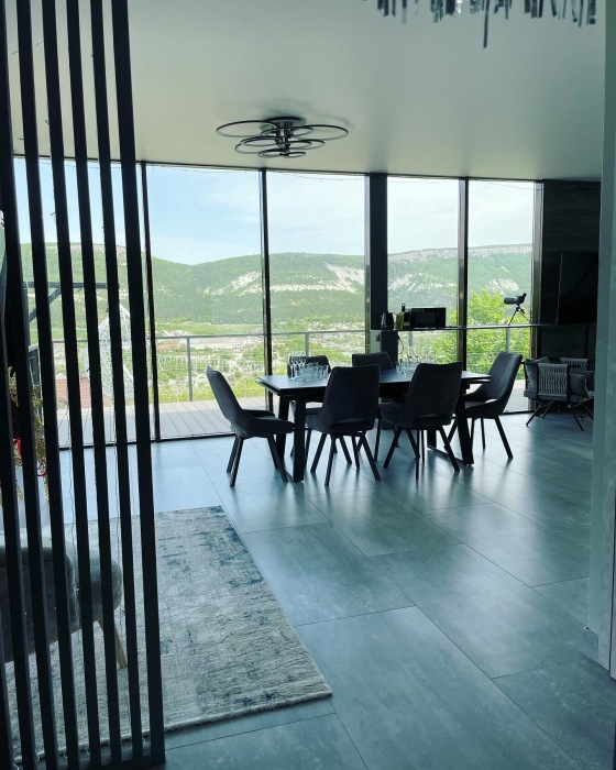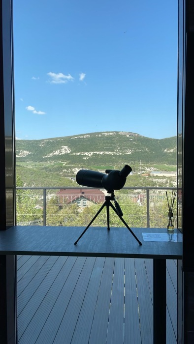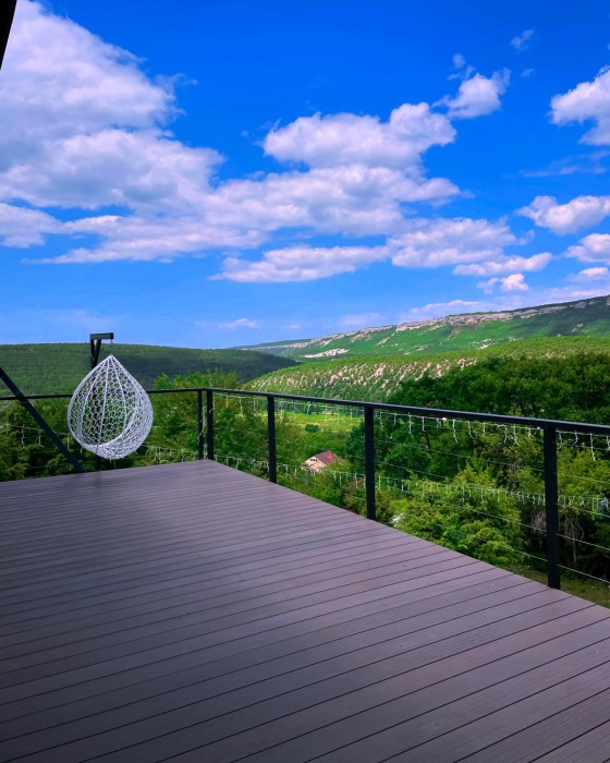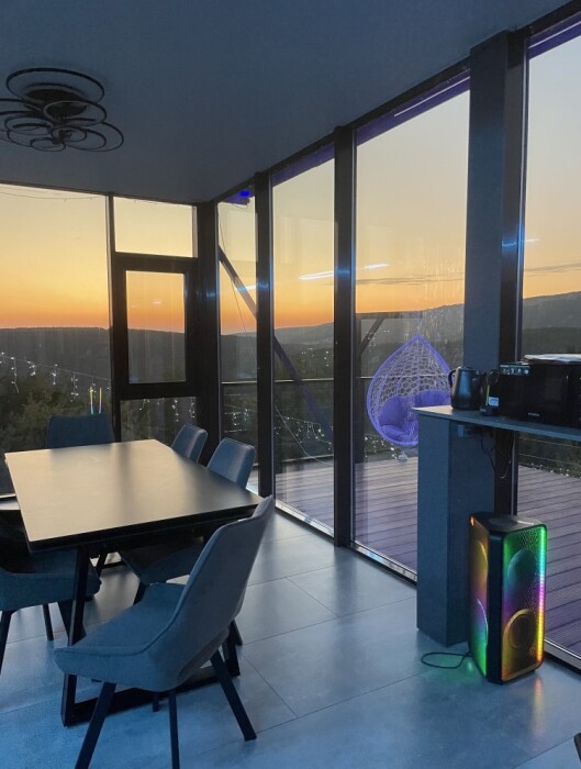 Из панорамных окон открывается потрясающий вид на горы и пещерные монастыри Шулдан и Челтер Мармора, их можно увидит через нашу подзорную трубу. Чистейший воздух за счет горных трав и можжевелов - гарантирован. На территории есть гостевой домик и основной дом с выходом на террасу и бассейн, есть барбекю зона, качели с широкой амплитудой раскачивания, 2 беседки для отдыха вместимость каждой до 5 человек, чан.