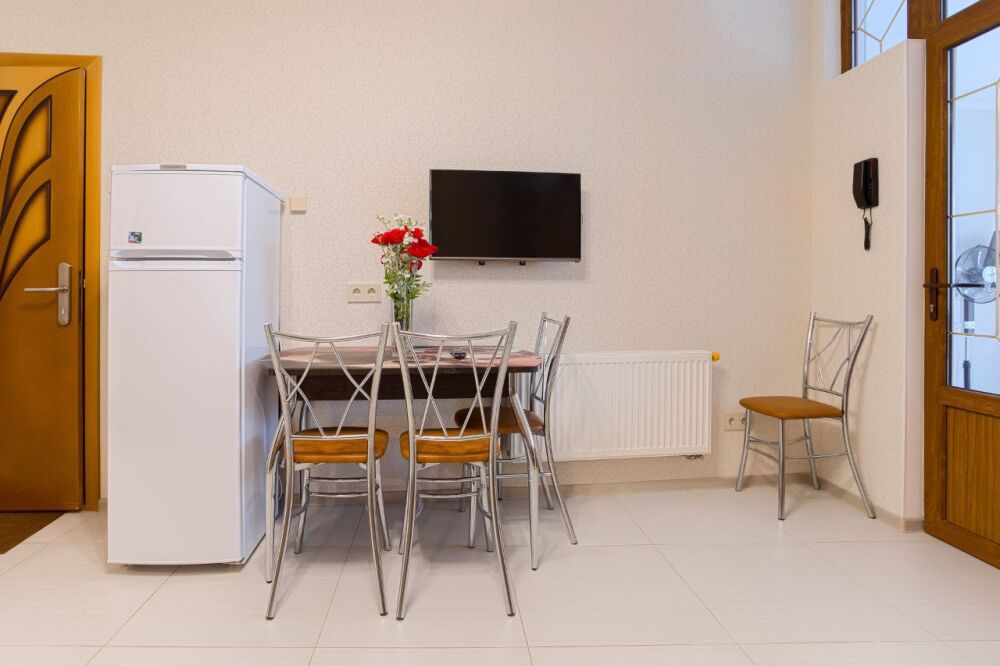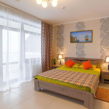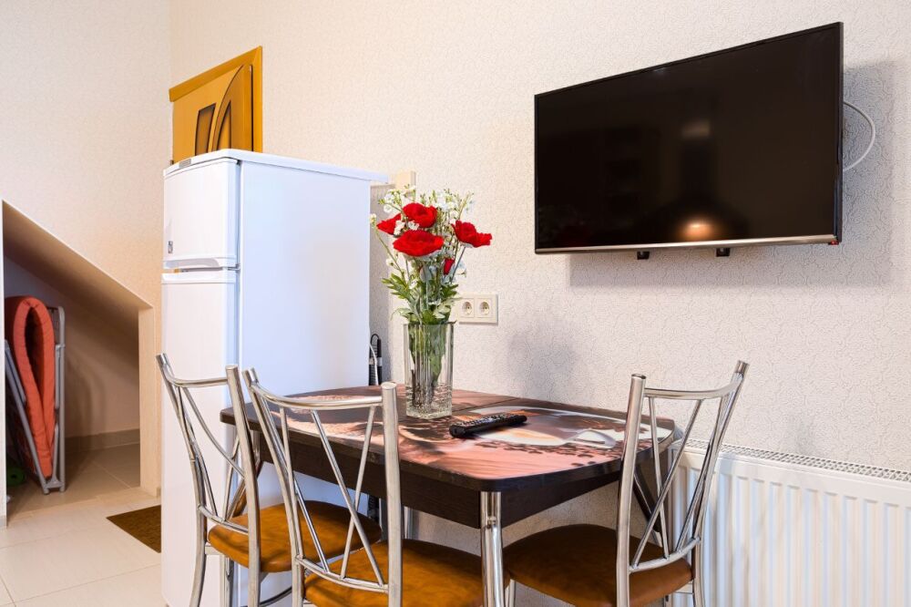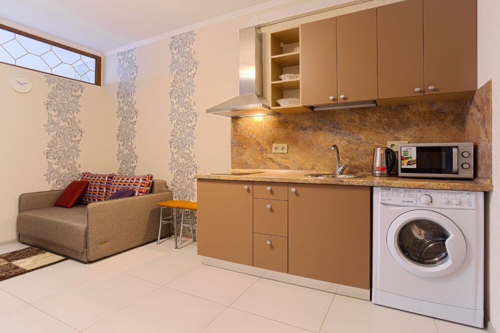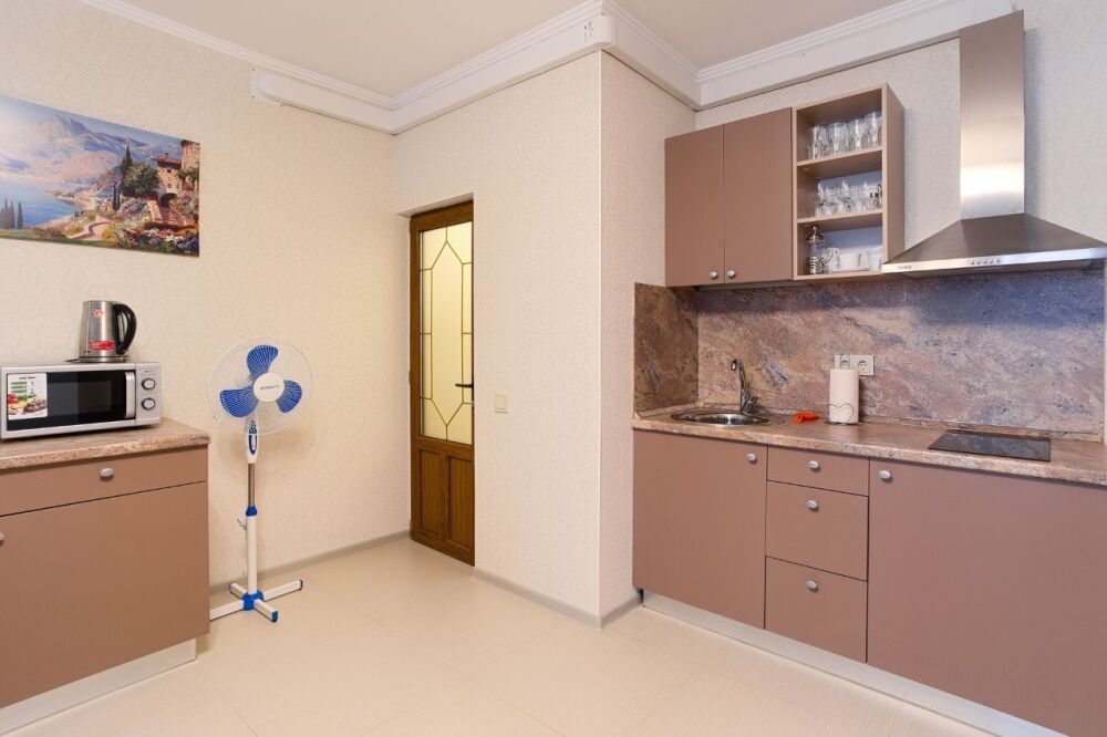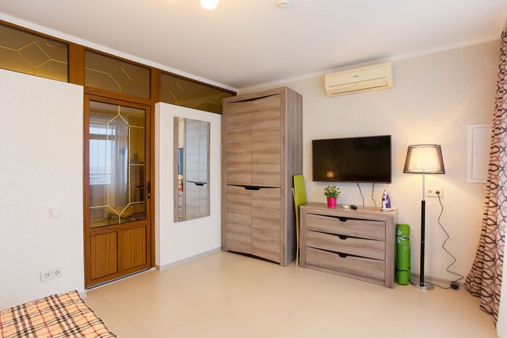 Апартаменты с видом на море находятся на 2-м этаже. Wi-Fi, балкон с видом на море и шезлонгами, телевизор, кондиционер, холодильник, микроволновая печь, чайник, электроплита, посуда, стиральная машина, утюг и гладильная доска, фен. Предоставляем полотенца, постельное белье и средства гигиены. Комната 1: кухня-гостиная (спальные места: раскладной 1-о местный диван). Комната 2: спальня с двуспальной кроватью. Для детей предоставляем детскую кроватку, стул для кормления и горшок. На территории: парковка, мангальная зона.