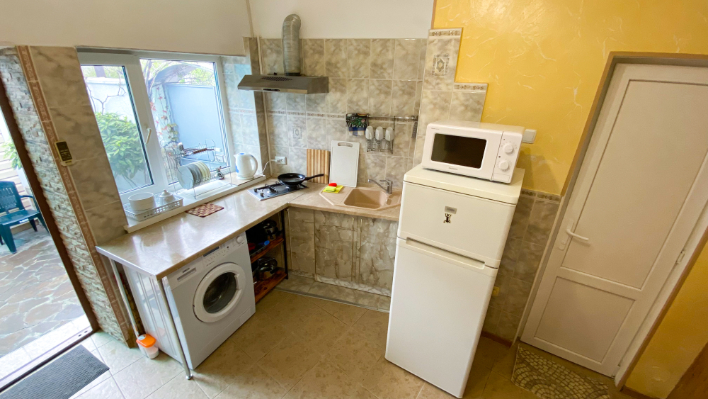 Это однокомнатный дом со своим отдельным двориком и всеми удобствами, расположенный в живописном историческом центральном районе Гурзуфа.