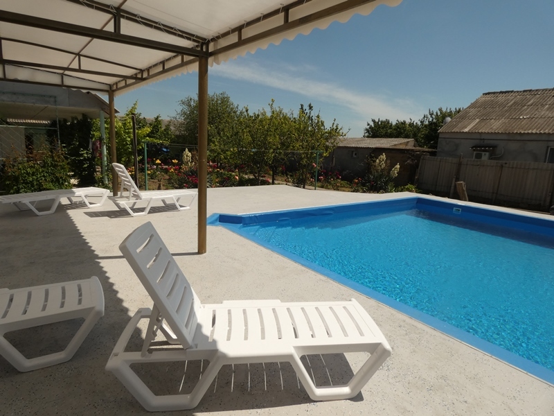 Большой двор с бассейном,беседками, горячая, холодная вода постоянно.