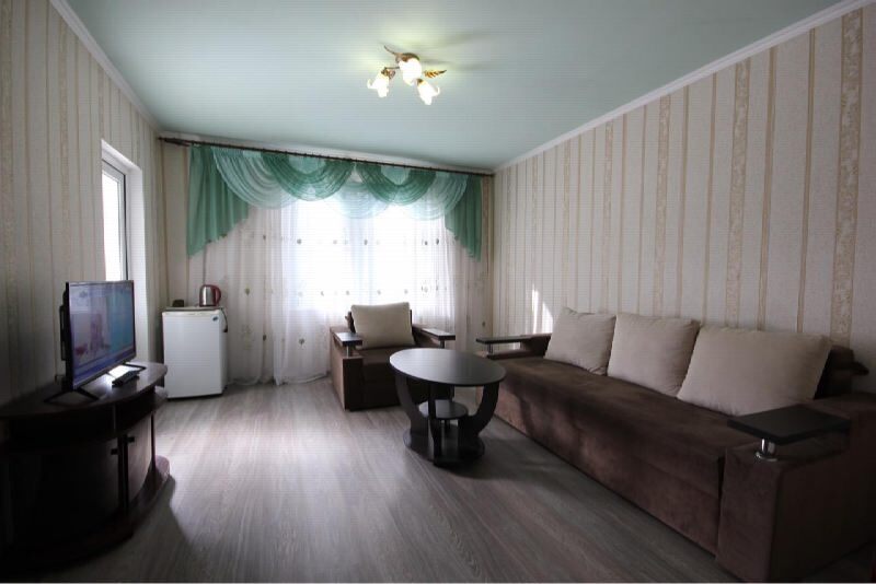 В апартаментах: 2-спальная кровать, раскладной диван, душ и санузел (горячая и холодная вода круглосуточно), телевизор, холодильник, кондиционер, электрический чайник, посуда, wi-fi. Отдыхающим предоставляем полотенца и постельное белье.