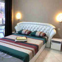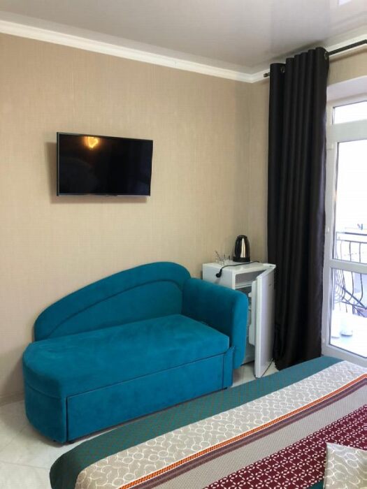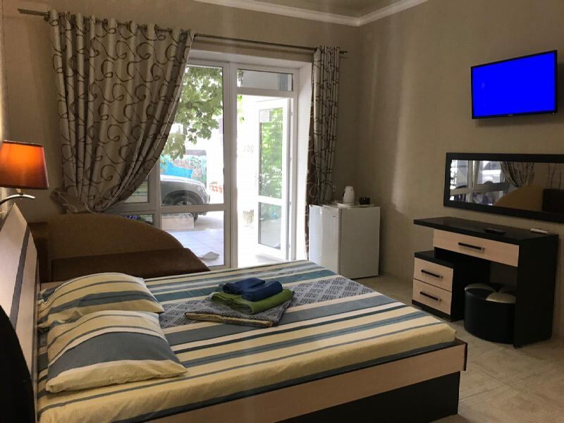 В номере: двуспальная кровать, раскладной диванчик, душ и санузел (горячая и холодная вода круглосуточно), телевизор, холодильник, кондиционер, электрический чайник, посуда, wi-fi. Отдыхающим предоставляем полотенца и постельное.