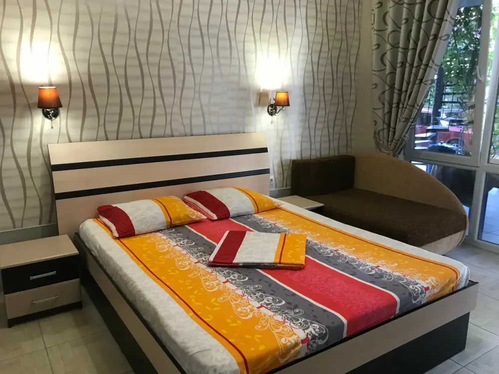 В апартаментах: 2-спальная кровать, душ и санузел (горячая и холодная вода круглосуточно), телевизор, холодильник, кондиционер, wi-fi. Отдыхающим предоставляем полотенца и постельное белье.