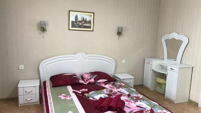 В апартаментах: 2-спальная кровать, раскладной диван, душ и санузел (горячая и холодная вода круглосуточно), телевизор, холодильник, кондиционер, wi-fi. Отдыхающим предоставляем полотенца и постельное белье.