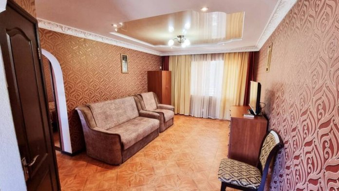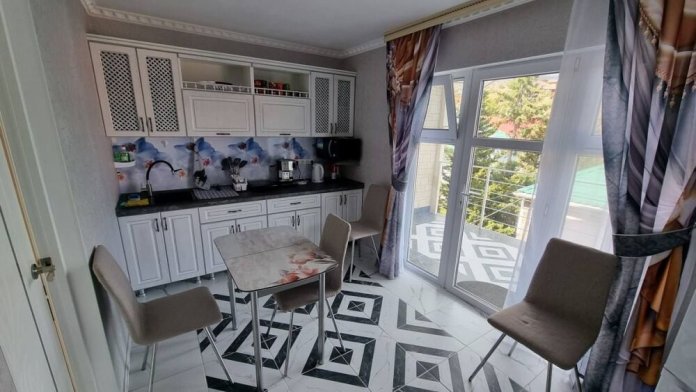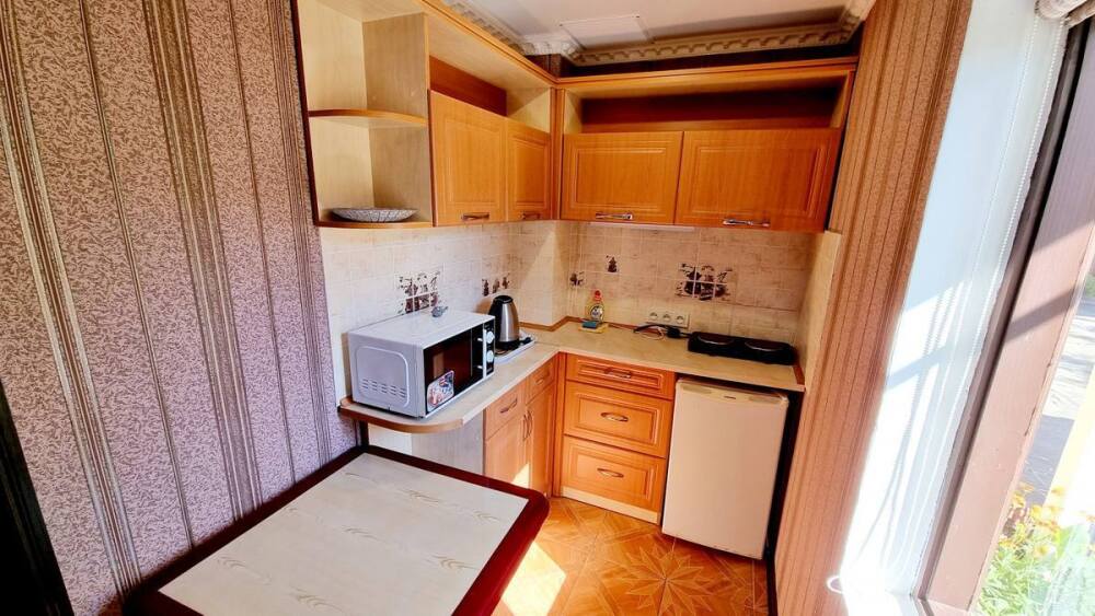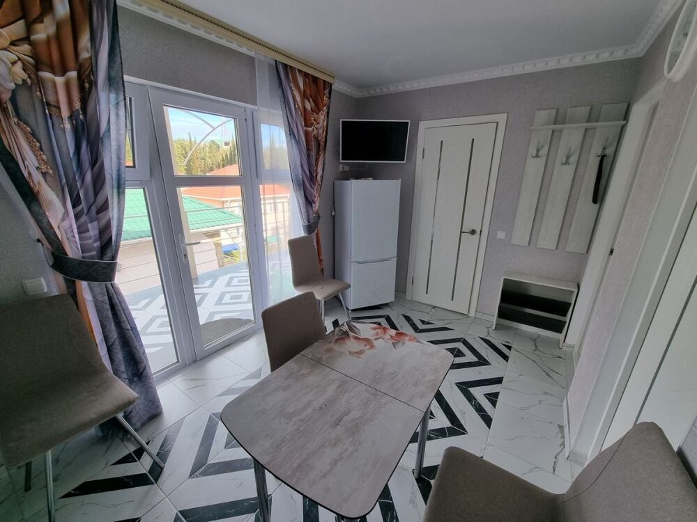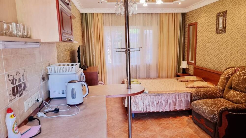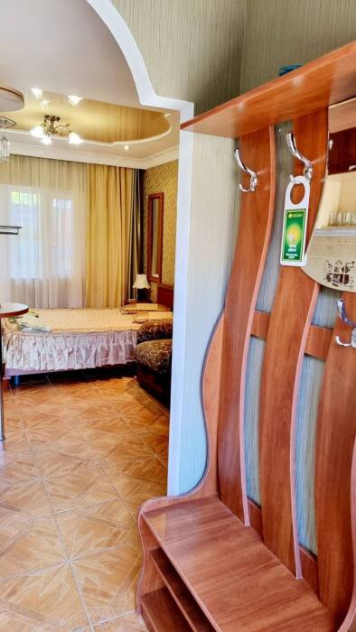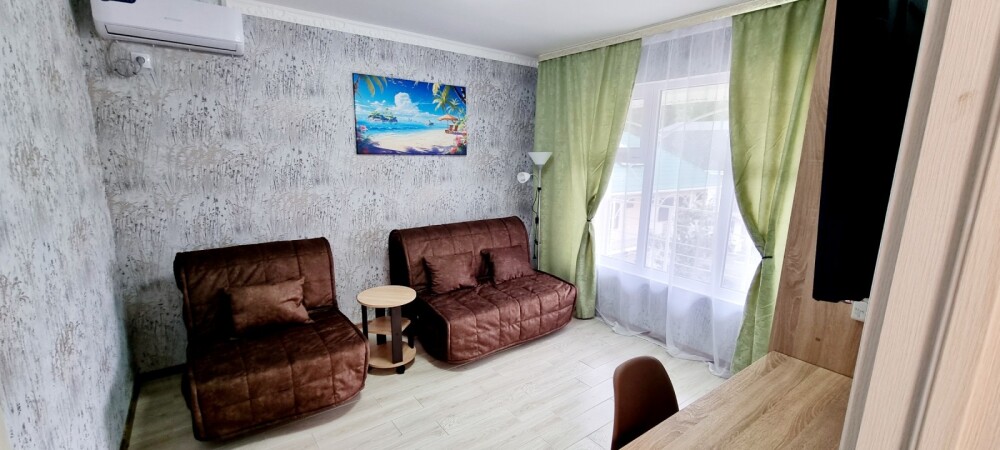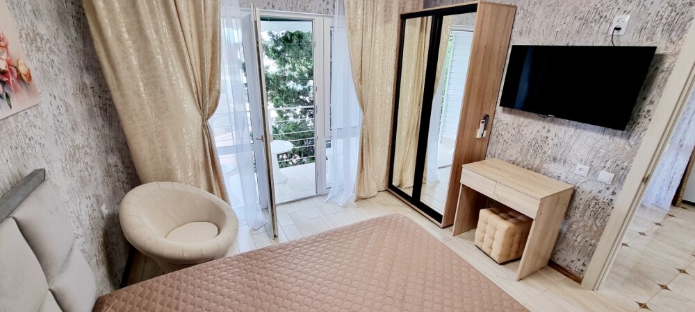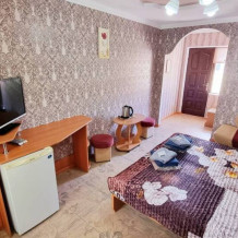 Двухкомнатный номер полулюкс с кухней и со своим двориком у номера. Такие апартаменты позволяют с комфортом разместить 4 взрослых гостей пансионата и 2 детей (до 8 лет), предоставив максимальное количество удобств для полноценного морского отдыха.