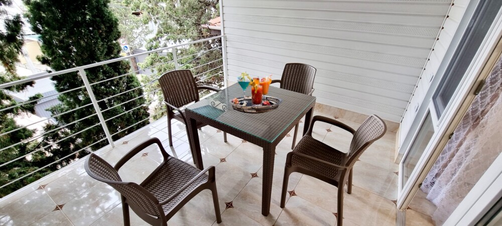 Такие апартаменты позволяют с комфортом разместить 3-4-х взрослых гостей и 1-2 ребенка детей (до 10 лет), предоставив максимальное количество удобств для полноценного отдыха у моря.