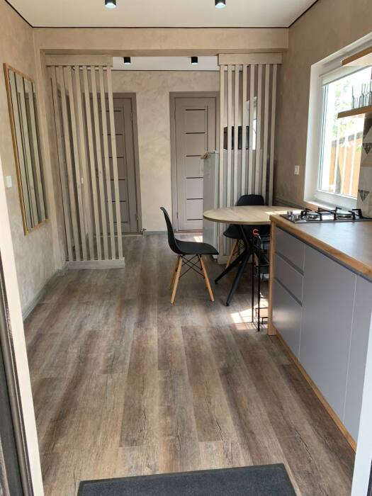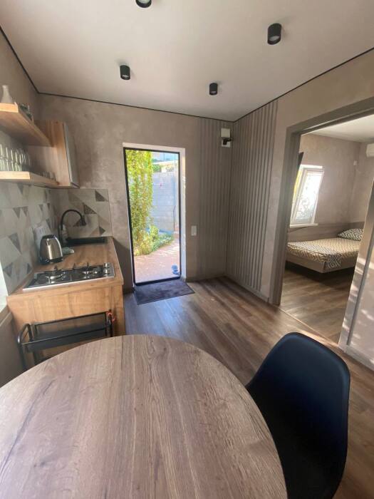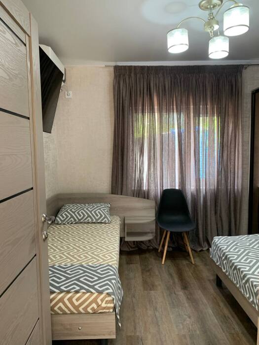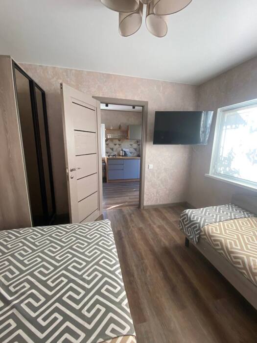 В доме две отдельные комнаты и просторная кухня, так же есть два санузла, один расположен в доме, второй во дворе. В каждой комнате стоит 2-спальная кровать и одна 1-спальная кровать, шкаф купе, кондиционер, тв.