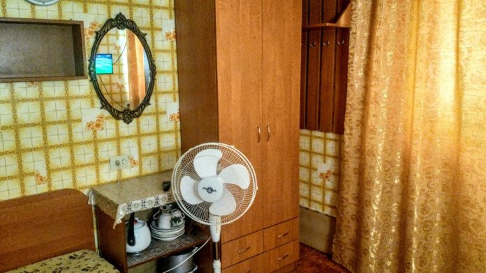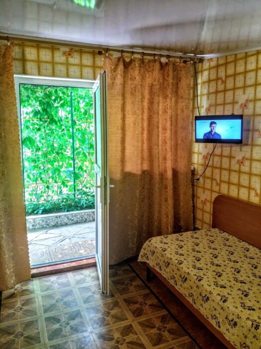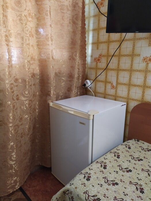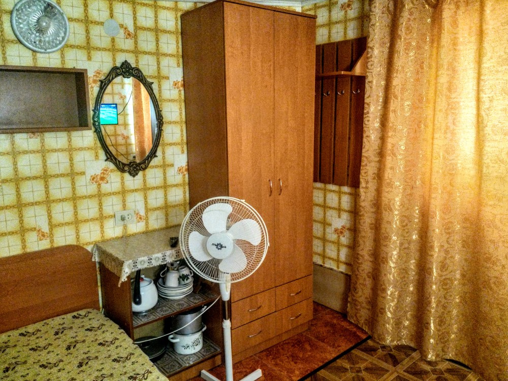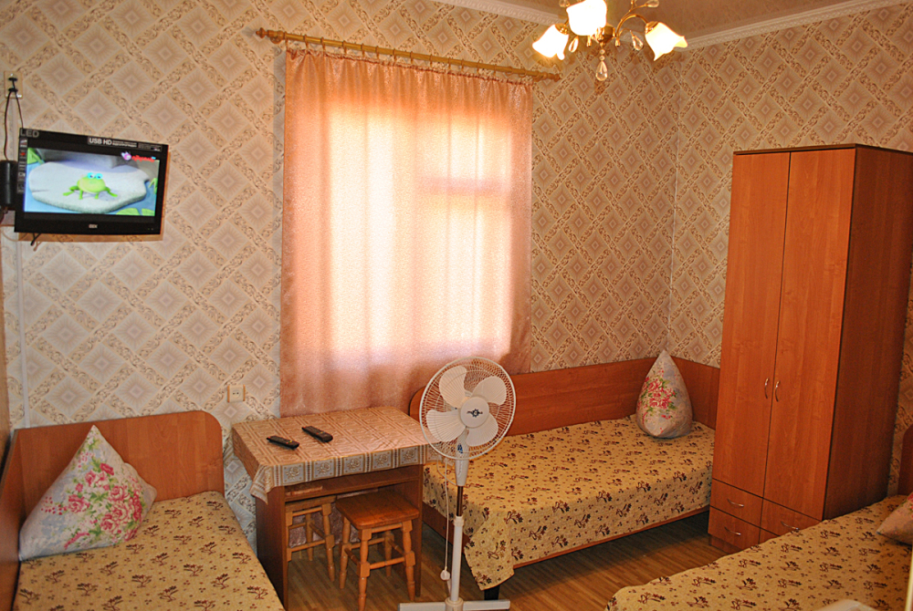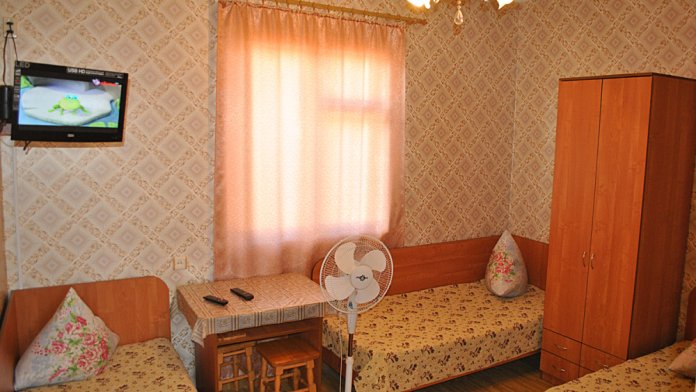 Комната находится на 1-м этаже В комнате есть холодильник, вентилятор, телевизор со спутниковыми каналами, шкаф, три односпальных кровати. Вид во двор
