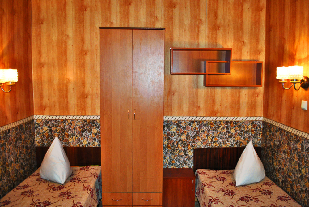 Комната находится на 2-м этаже главного корпуса. В номере есть холодильник, вентилятор, телевизор со спутниковыми каналами, шкаф, одна 2-х спальная кровать. В коридоре находится мощный кондиционер.