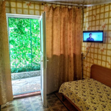 Комната находится на 1-м этаже В комнате есть холодильник, вентилятор, телевизор со спутниковыми каналами, шкаф, 1 двуспальная кровать, 3 односпальных кровати, Вид во двор.