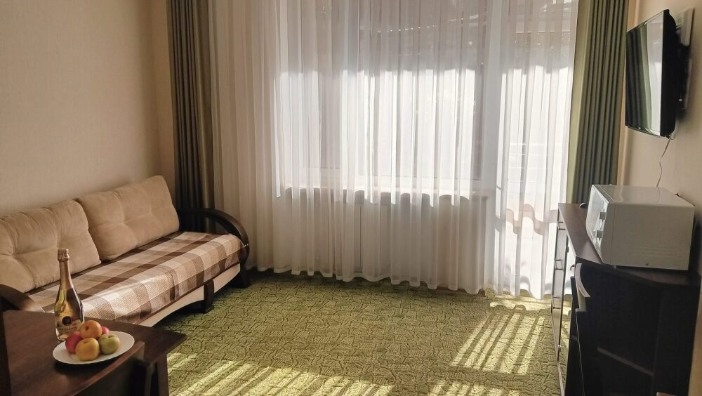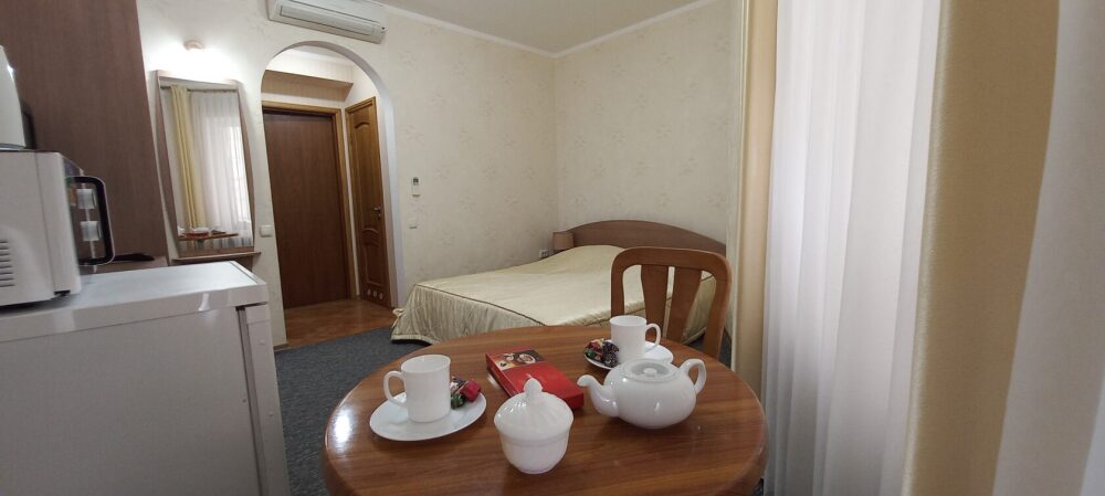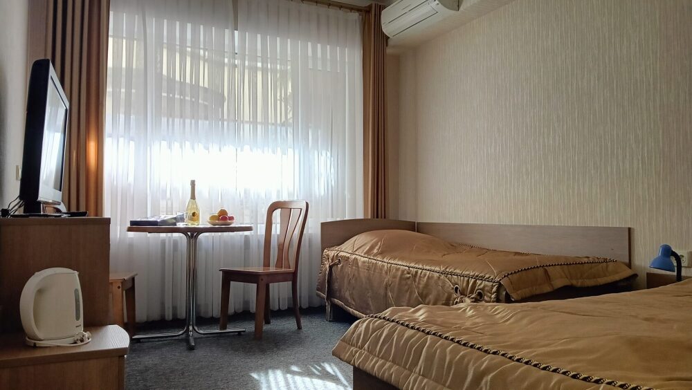 Все номера с кондиционерами, с санузлом горячей, холодной водой круглосуточно. В номерах удобные кровати с ортопедическими матрасами. Для питья используется только очищенная вода.