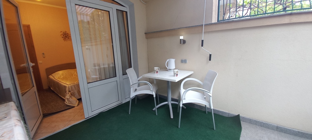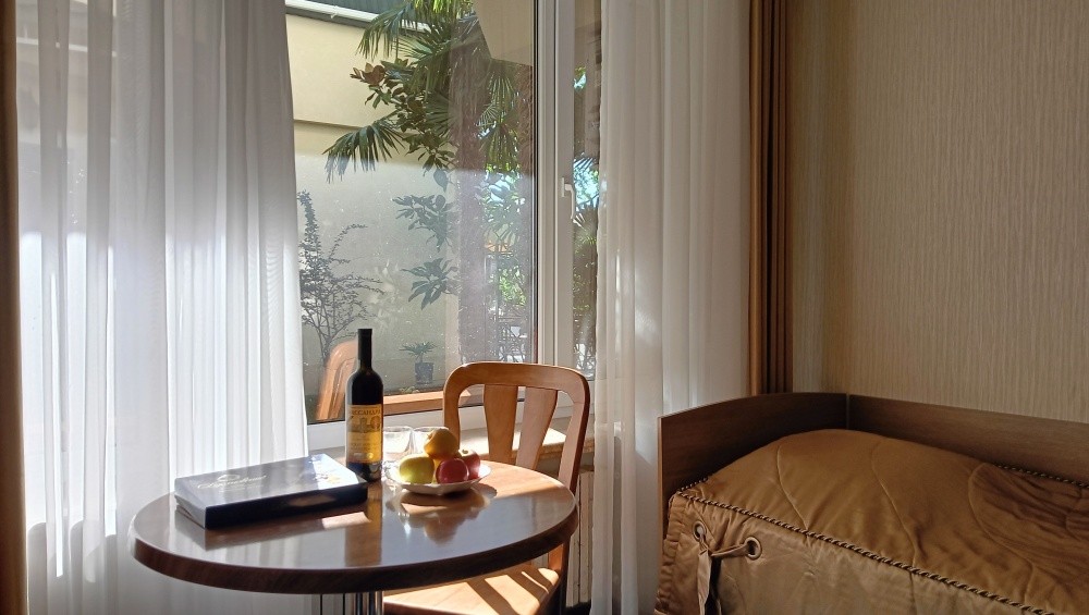 В этом году отдыхали в "Уютном дворике" с 27 мая по 10 июня. Когда появилась возможность полететь в Крым, без раздумий было решено: только Мисхор и только "Уютный дворик". Дни пролетели незаметно, хорошее быстро заканчивается...) Номер нам предоставили тот же - Люкс №4, условия проживания радовали во всем: хороший Wi-Fi (отдых совмещался с работой, и интернет был важен), новый ковролин на полу, больший новый диван в гостиной, а также кресло-кровать, фильтр для воды на кухне (не было необходимости носить питьевую воду из магазина), комфортная душевая с хорошим напором воды (что далеко не везде в Крыму, было с чем сравнивать), полностью укомплектованная кухня, лоджии с местами для отдыха...Самый придирчивый критик не нашел бы повода для замечаний! Отдельное спасибо девушкам-горничным Ирине и Анне, смена постельного белья и полотенец, уборка, все вовремя и в наше отсутствие. С удовольствием буду рекомендовать этот гостевой дом, благодарим хозяина за гостеприимство и радушный прием!