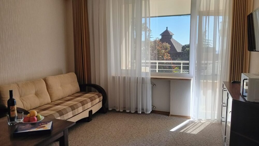 Отдыхали у Павла Владимировича в мае 2 чудесных недели. В выборе гостиницы мы были не ограничены, остановились на «Уютном дворике» по рекомендации и ни разу не пожалели. Проживали в Люксе №4 вдвоем: я и дочь 6 лет, в реальности номер намного привлекательнее даже, чем на фото: кухня-гостиная просторная, уютная спальня, вместительные шкафы-купе, 2 ТВ, 2 кондиционера, стиральная машинка, 2 лоджии, чистота, уют, все продумано до мелочей… Соглашусь с предыдущими отзывами, на кухне есть абсолютно все: от штопора до микроволновки и шумовки. С ребенком очень удобно, завтраки готовили как дома, обедали на прогулках, ужин, по желанию, в ближайшем кафе в 30-ти метрах от гостиницы, там же продуктовые магазины и остановка. Транспортная развязка очень удачная, можно уехать и в Ялту, и до Алупки, и по другим направлениям; одна остановка вверх – канатная дорога на Ай-Петри. В тоже время сам гостевой дом находится чуть выше проезжай части, по ночам идеальная тишина, нарушаемая только хором лягушек и пением птиц. До моря 7-10 минут прогулочным шагом, первая линия – это непосредственно санатории, парки, отличное место для прогулок, свободный вход на пляж санатория. Отпуск вспоминаем с теплотой и любовью, ребенок интересуется, когда снова поедем в гости к Павлу Владимировичу). Трижды рекомендую этот гостевой дом, приятный отдых в достойных условиях!