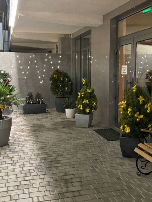 Из окон вид на город и горы, рядом магазины, рестораны, столовые, банк в доме на первом этаже, аптека, у дома имеется собственная парковка.